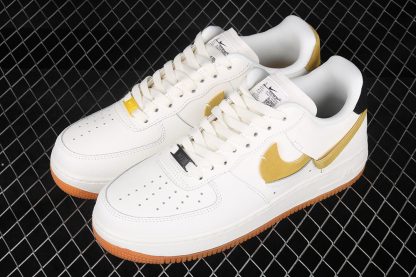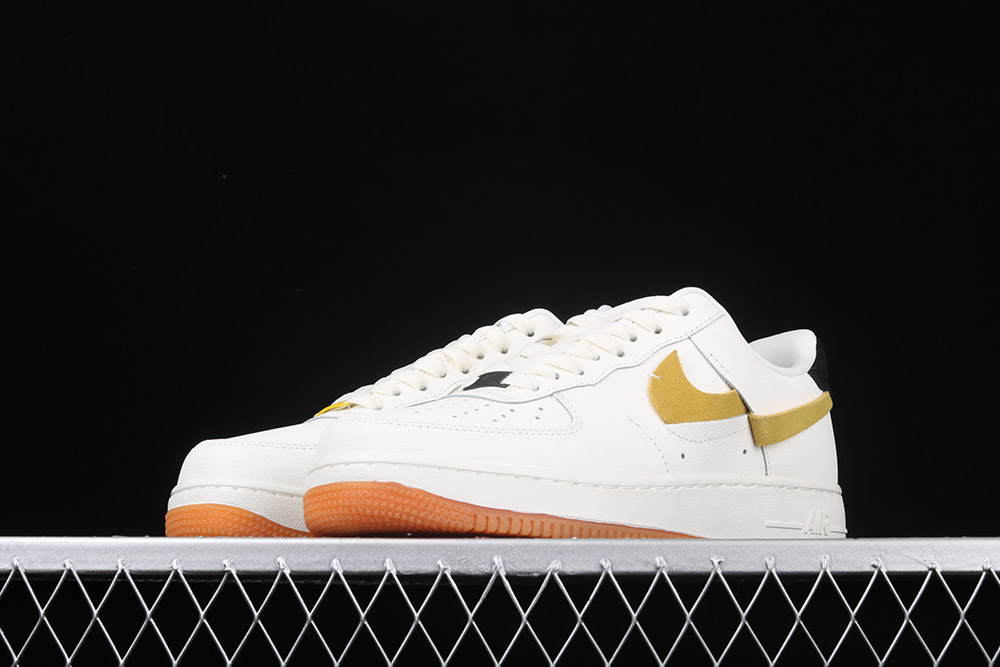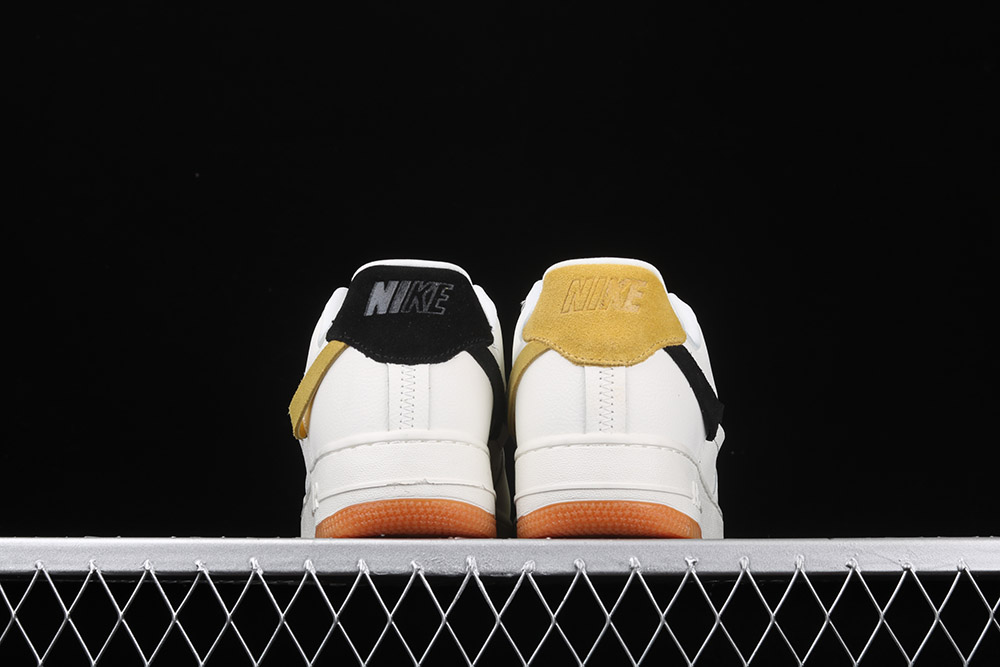 Dressed in a Sail, Black, Chrome Yellow, and White color scheme. This Nike Air Force 1 gets a reconstructed design for a new look at that features flipped tongue labels, off-balanced Swooshes and reverse color blocking offering a fresh, rejuvenated expression.