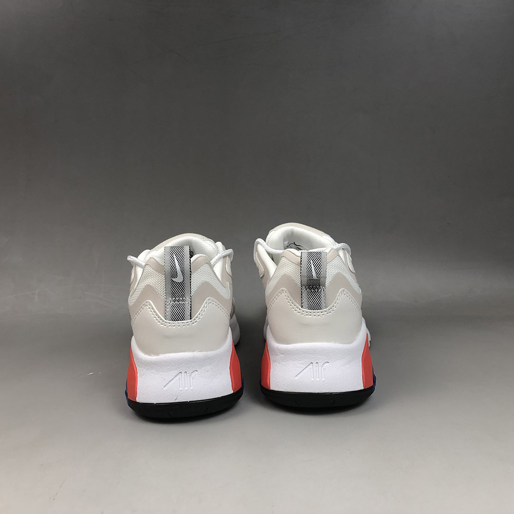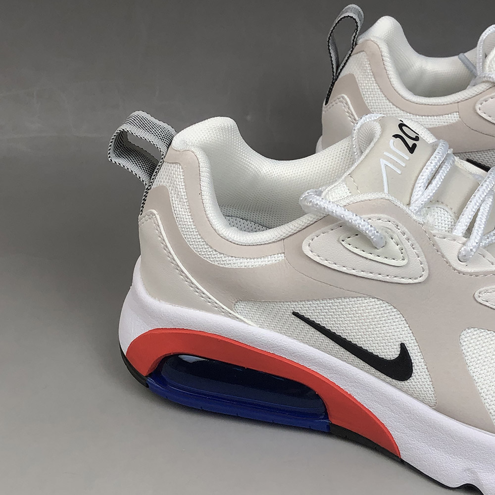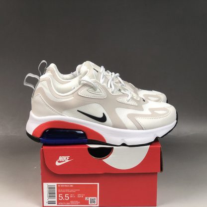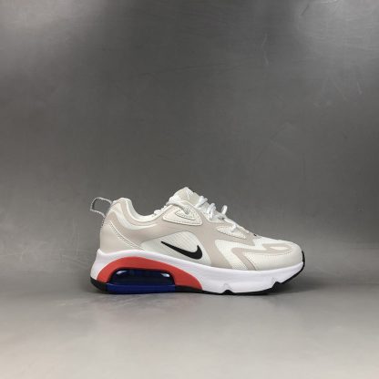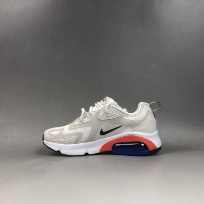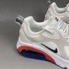 Its latest women’s release comes dressed in a Sail, Black, Desert Sand, and Phantom color scheme. Featuring a Phantom mesh upper with Sand wavy overlays all on in a leather build. Black Swoosh logos, tongue branding and rubber outsole atop a White midsole and Red/Blue on the Air Max cushioning unit.