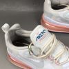 Dressed in a Summit White, Ghost Aqua, and Phantom color scheme. This Nike Air Max 270 sports a toned down White and Phantom upper detailed with Pink accents on the Air unit and eyelets. Finishing off the design are touches of Ghost Aqua landing on the outsole and branding elements.