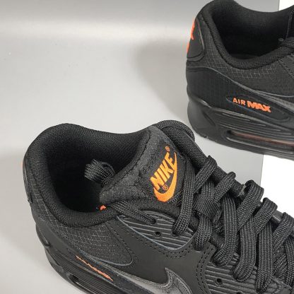 Perfect for the spooky holiday, this Nike Air Max 90 features a Black-based upper with a grid pattern on the mudguard. Orange accents are used on the branded areas as well as the Air Max bubble completed with a solid Black rubber sole.