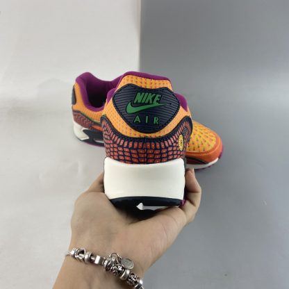 The Air Max 90 takes inspiration from Día de Muertos, a Mexican tradition that celebrates life and death while honoring family and beloved ones. Inspired by the traditional ofrenda placed in homes every year during the Día de Muertos celebration, it remixes heritage with a modern approach grounded on art and culture. It takes color and material inspiration from Mexican ofrendas: altars used to welcome the dead home during Día de Muertos celebrations. Bright colors throughout the upper mirror the eye-catching decorations commonly seen on traditional ofrendas.