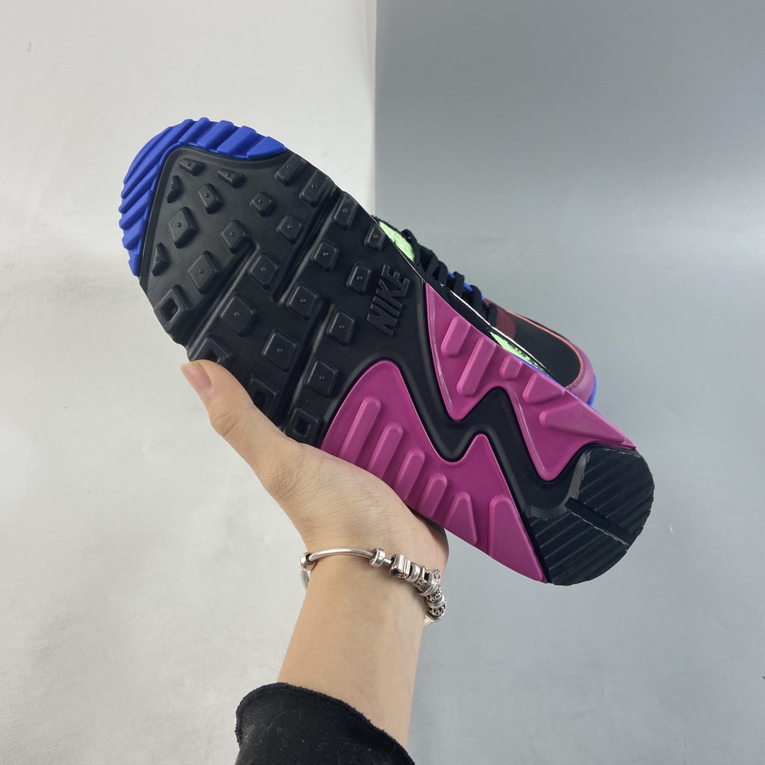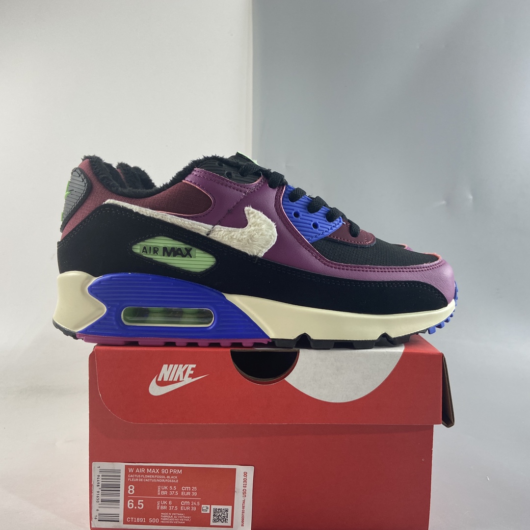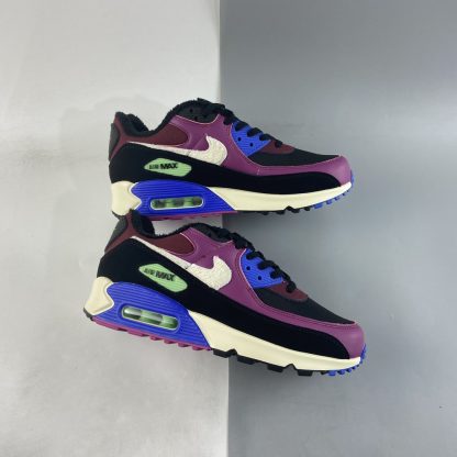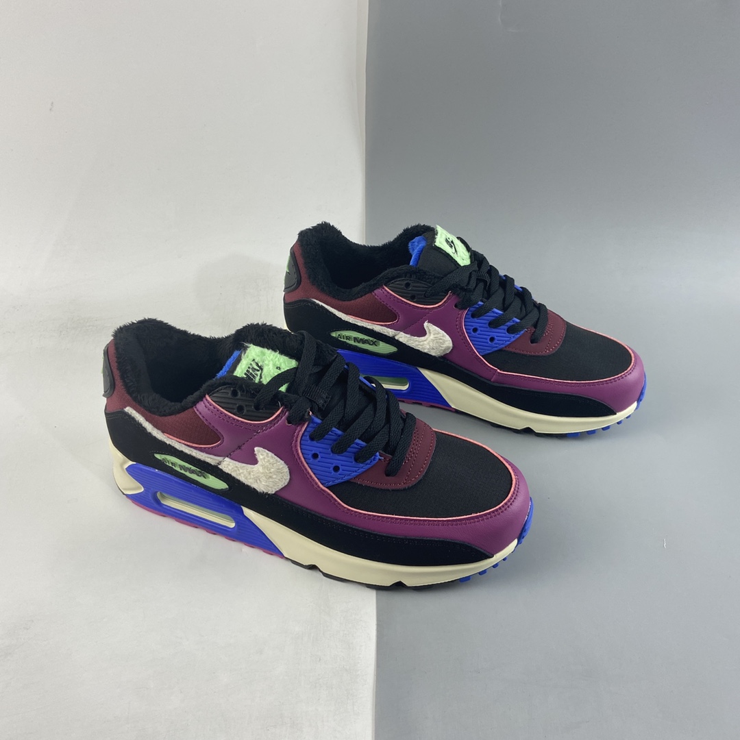 This edition of the Nike Air Max 90 comes constructed in a mix of ripstop, leather and suede covered in Purple, Blue and Lime Green color tones. Fur material is used on the tongues, Swoosh and inner lining to keep your feet warm during the colder months. An aged-look midsole completes the design.