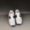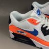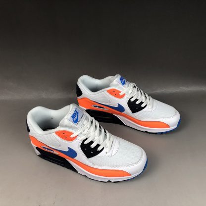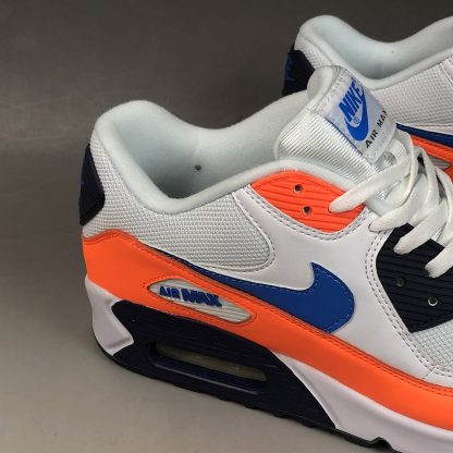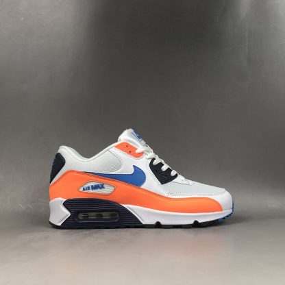 This offering features a White leather and mesh upper paired with Midnight Navy on the lower eyelets, midsole and heel tab. Both Orange and Blue contrasting is found on the Swoosh logo, tongue, heel tab, upper eyelets and midsole.