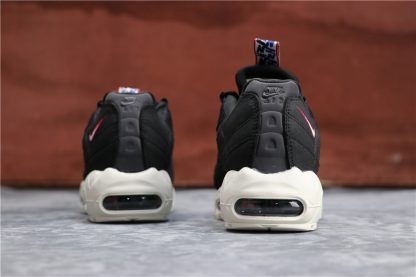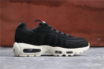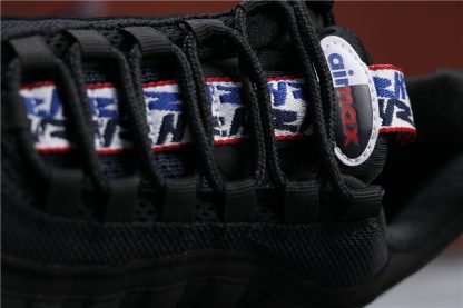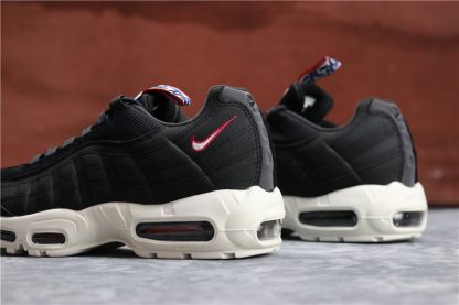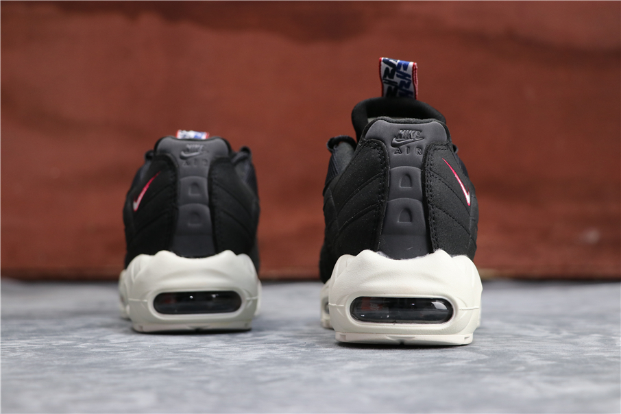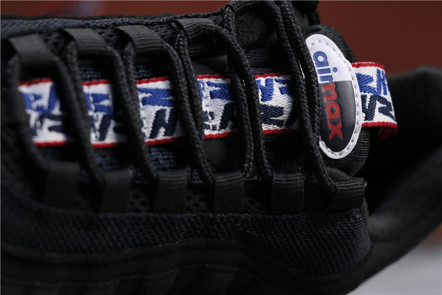 Unlike any other Air Max 95 released to date, this pair showcases a taped overlay which attaches to the lacing system. The Nike logo is repeated in a shade of red and blue which somehow brings even more vintage appeal to the shoe.