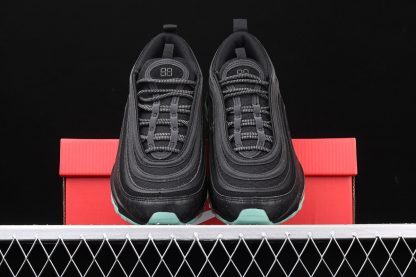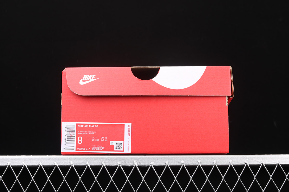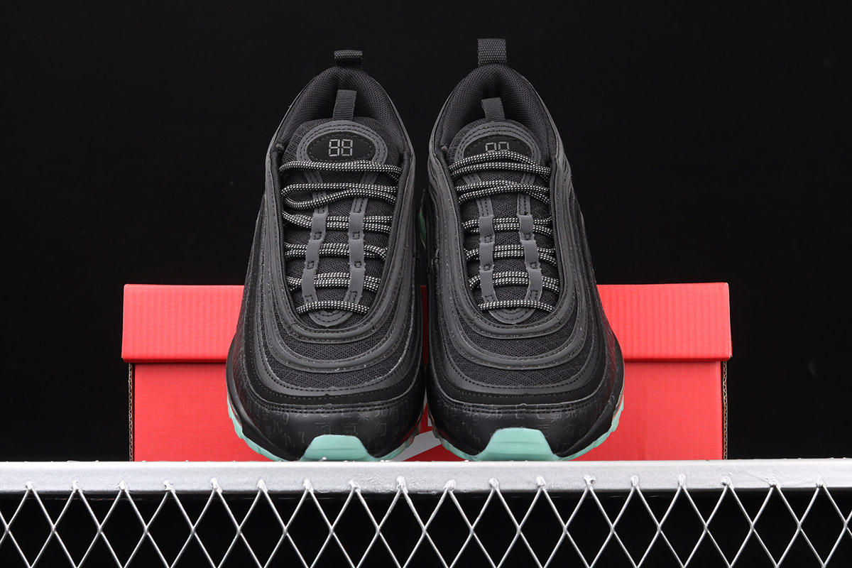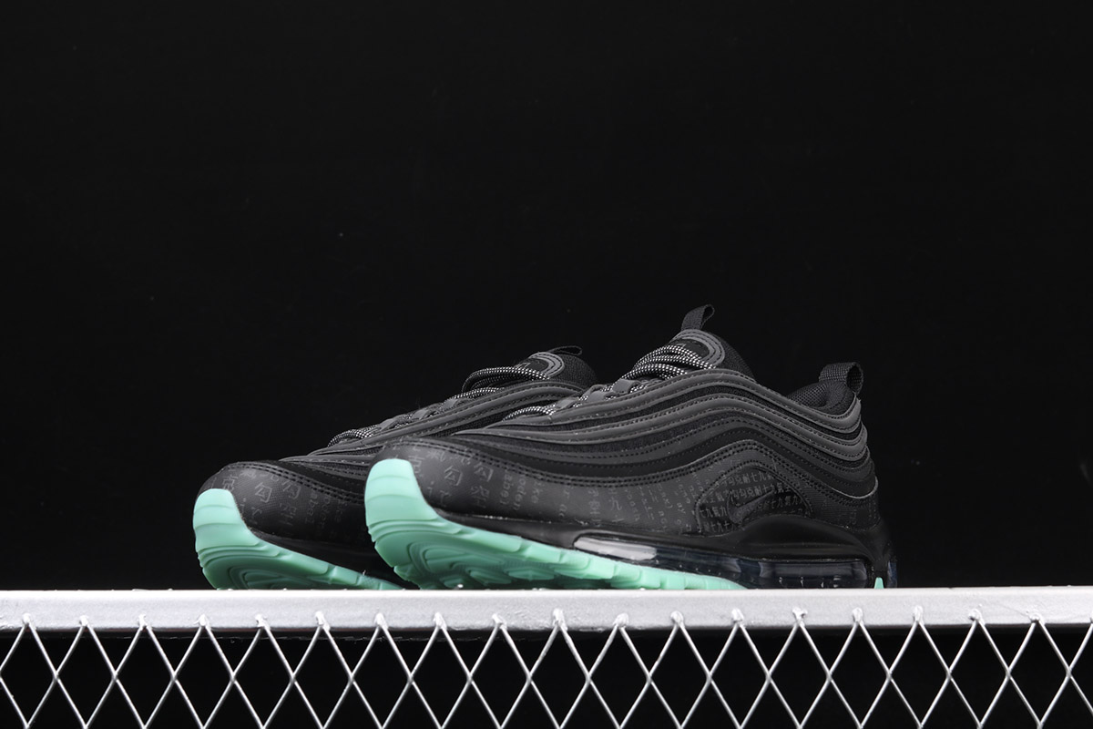 This offering features an all-Black upper with digital code print in English and Chinese wrapping around its mudguard. Reflective detailing atop a glow-in-the-dark outsole completes the design.