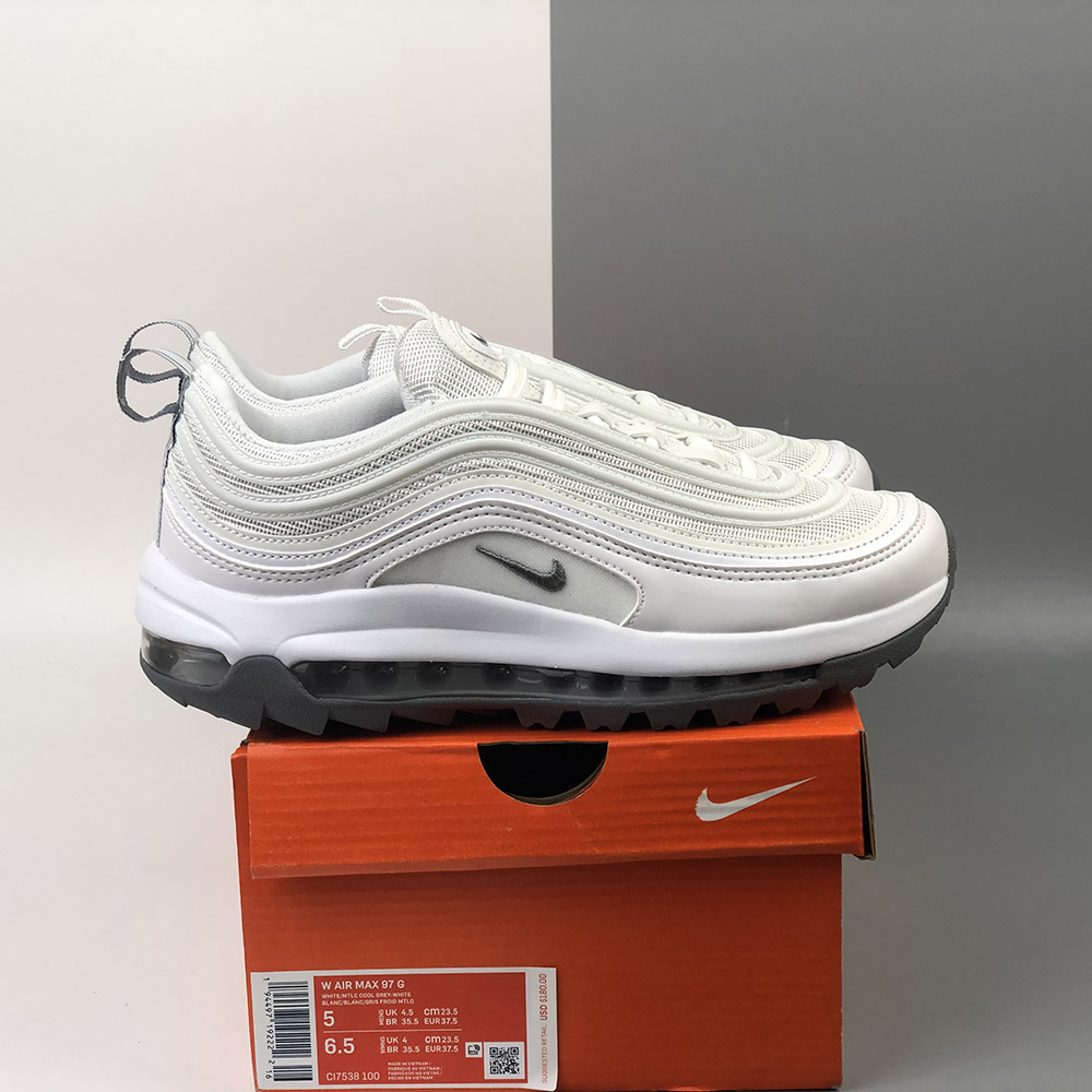 The shoe celebrates the original design by adding a grippy outsole that’s made for the course. This offering sports a White mesh and leather upper paired with Grey detailing on the Swoosh logos, heel tabs, insoles and outsole.