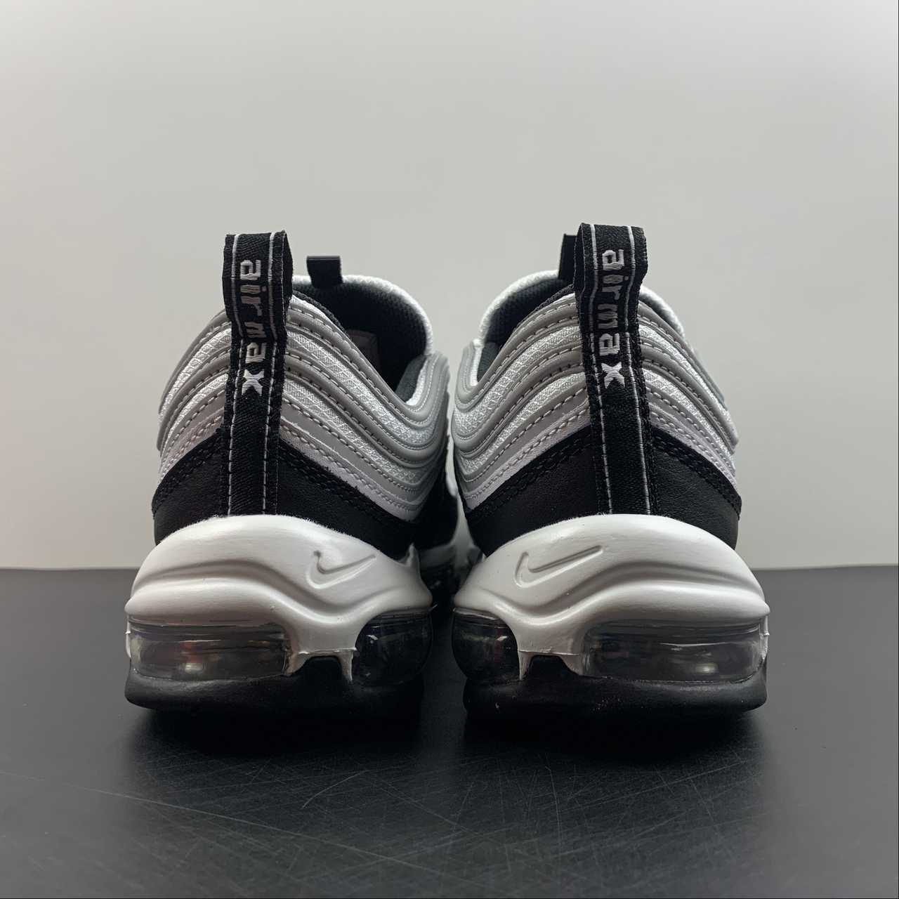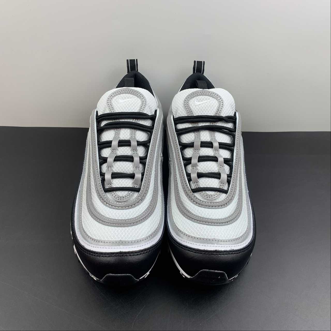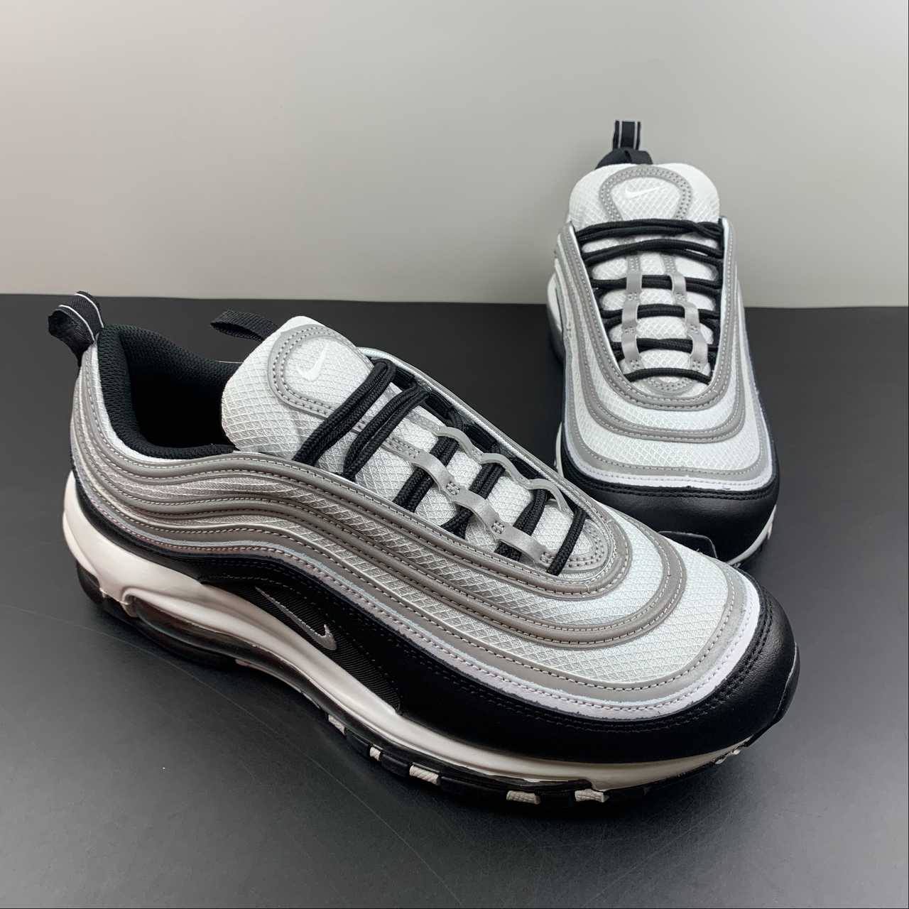 Set to arrive later this year is this simple black and white colorway of the 97, capturing the trendy “Panda” look that dominated the Dunk Low circuit. However, these feature the trademark reflective silver tracks on the upper as well as the tongue, adding high visibility when hit with flash.