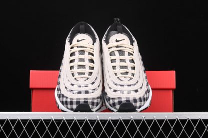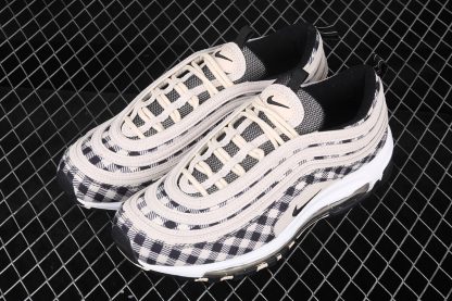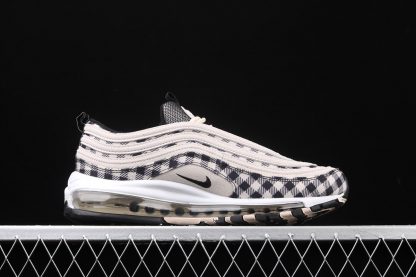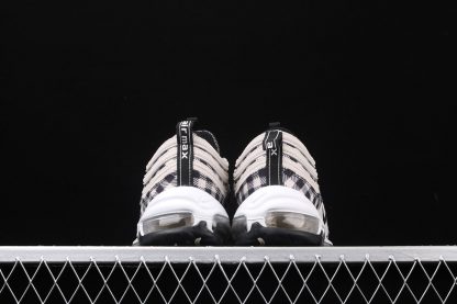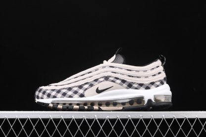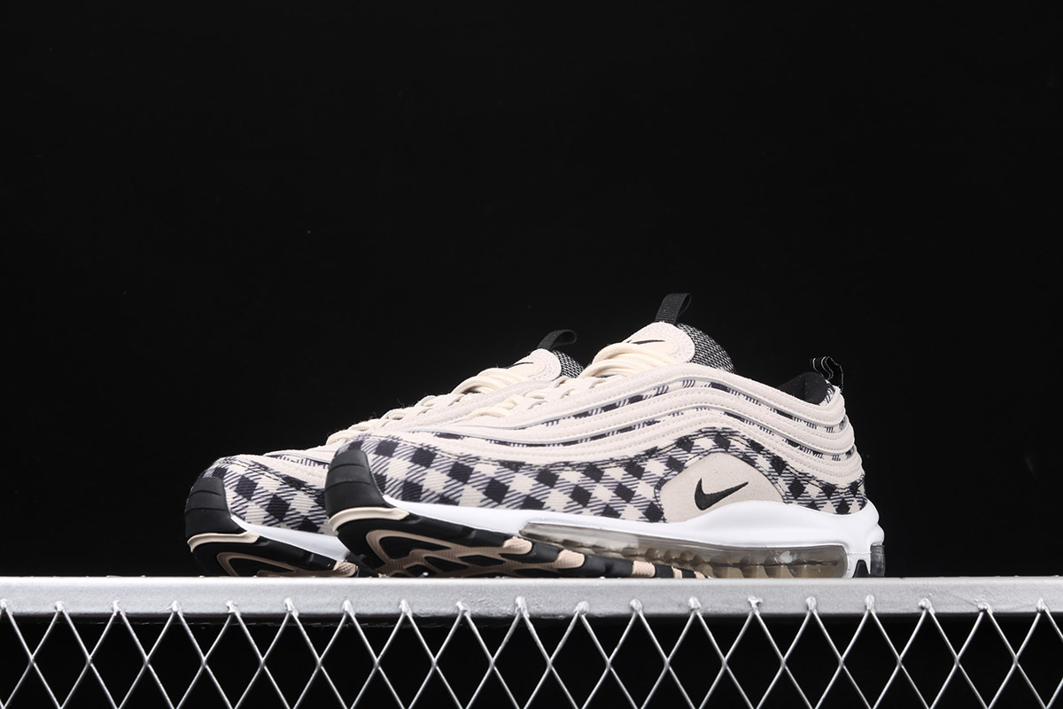 This time, the Nike Air Max 97 features a Tan suede on the striped overlays, while having a plaid pattern in Black and Tan on the underlays. A White midsole atop a Tan and Black rubber outsole completes the design.