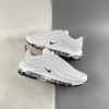 This offering of the Air Max 97 features an all-White leather base with Navy embroidered Swooshes that are outlined in Red on both lateral and medial sides. Multi-Color pull tabs on the tongues and heels atop a Navy and Red rubber outsole completes the design.