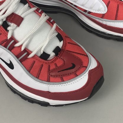 As you can see this Nike Air Max 98 comes dressed in a White, Black, Gym Red and Reflect Silver color combination. Across the uppers we have a mixture of Red and White while 3M Reflective accents lands on the trimming. In addition we have White across the midsole while Black takes over the outsole which completes the look.