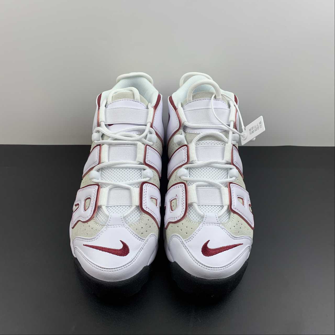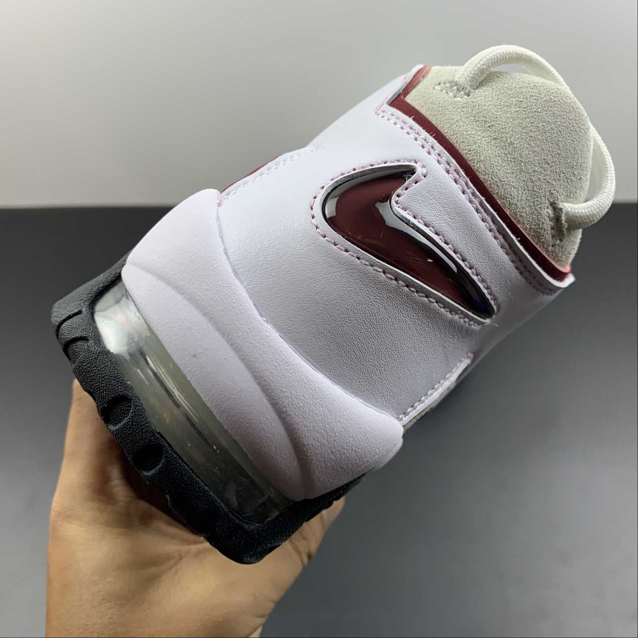 Reminiscent of an aged look, the suede dresses the entire side profile in a greyed out finish, further distancing itself texturally and tonally from the leather-constructed type over top. The red outline of each letter adds further dimension while simultaneously complementing the jeweled and embroidered Swoosh across the heel and toe, respectively. Finally, white dresses the midsole as well as the rest of the upper, and black outfits the entire bottom.