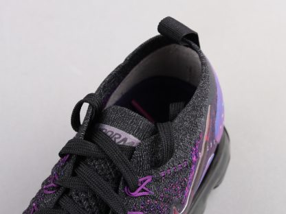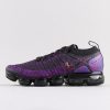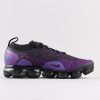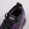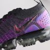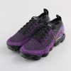 This Nike Air VaporMax features a Black and Purple Flyknit upper with matching Purple Flywire cables as well as its overlays on the sides and heels. A tinted translucent full-length VaporMax sole unit completes the design.