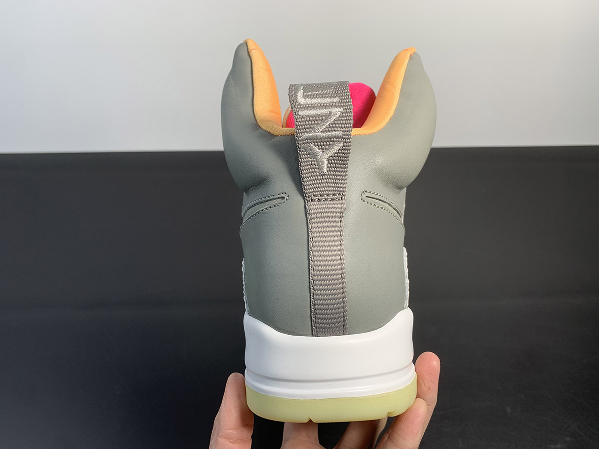 Dressed in a combination of Zen Grey and Light Charcoal color scheme that was highlighted with vibrant Orange and Pink accents. It came constructed in a mix of leather with suede on the mudguard and a patent leather strap that both featured an all-over “Y” print. A White midsole and glow-in-the-dark outsole completed this iconic design.