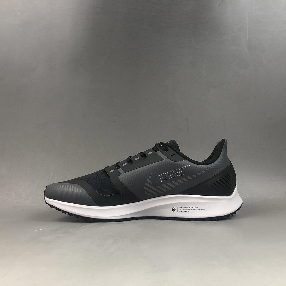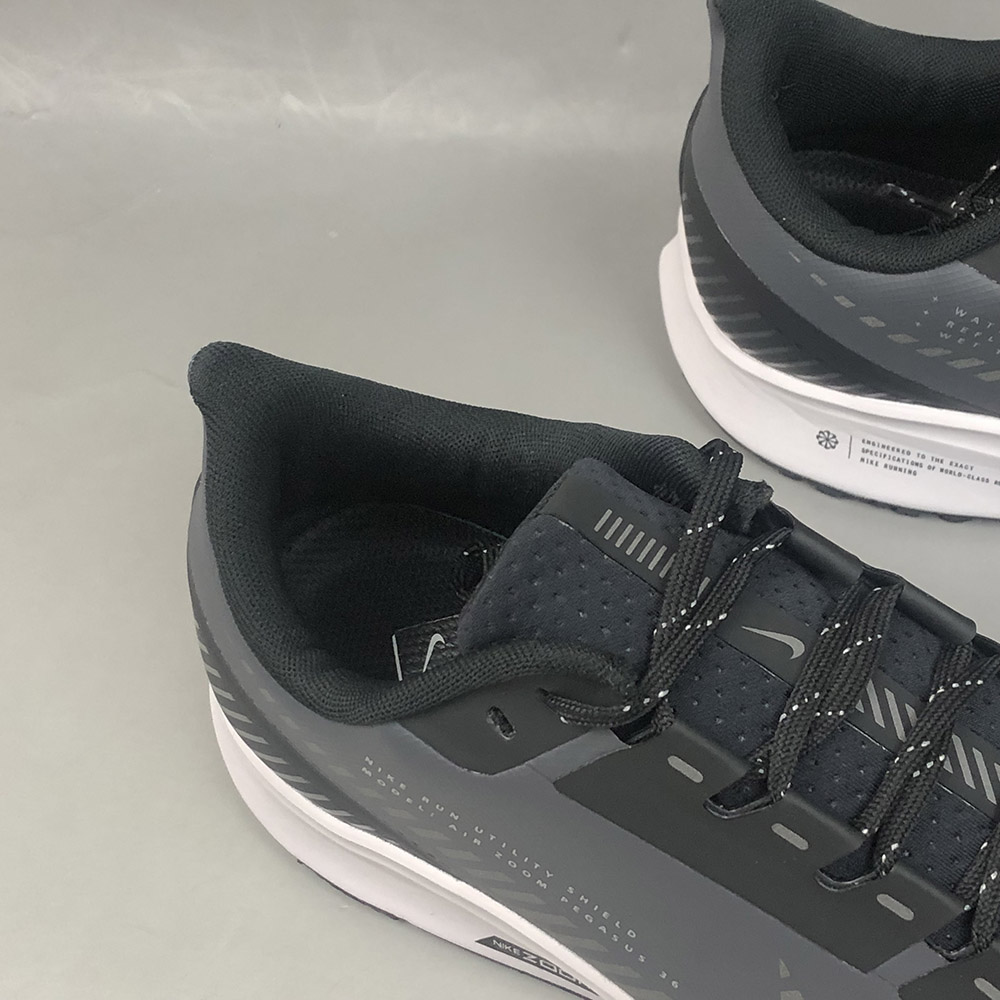 The Nike Air Zoom Pegasus 36 Shield gets updated to conquer wet routes. A water-repellent upper combines with an outsole that helps create grip on wet surfaces, letting you run in confidence despite the weather.