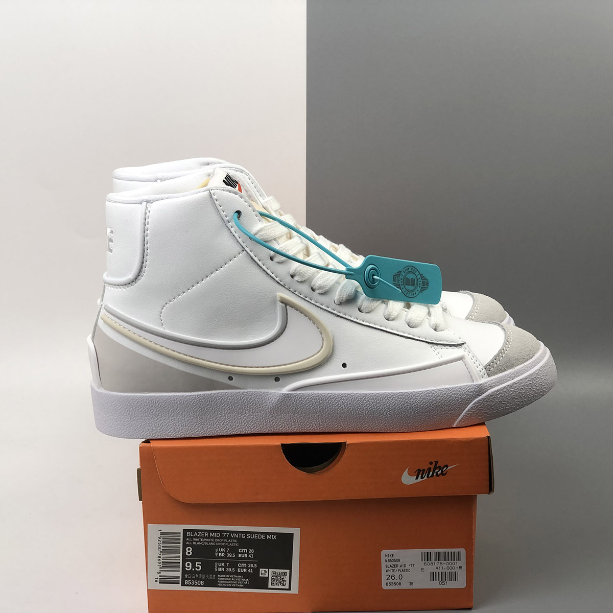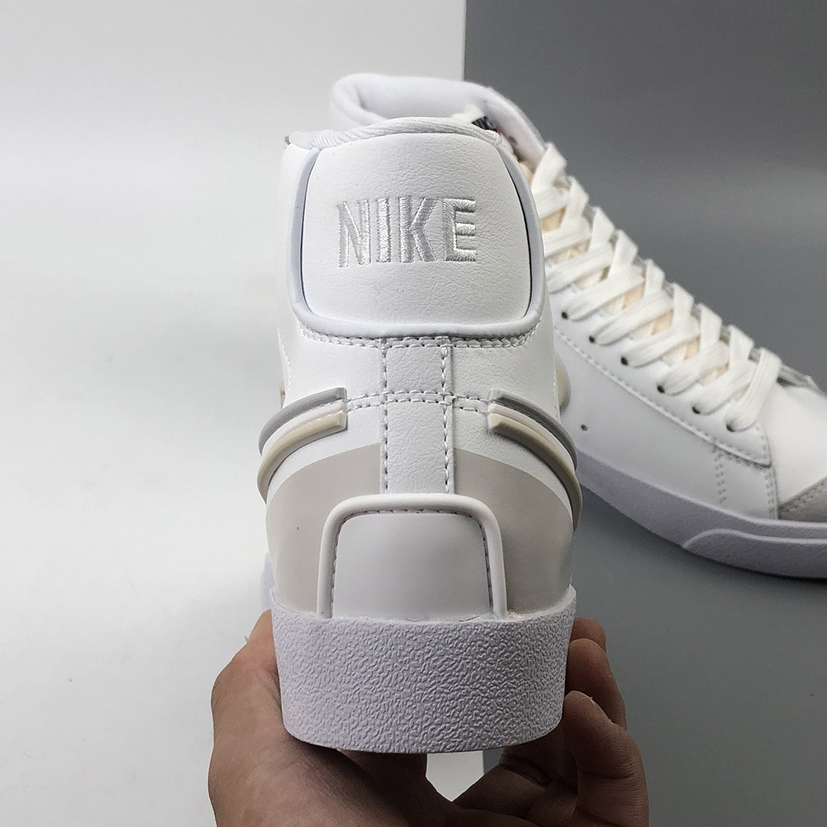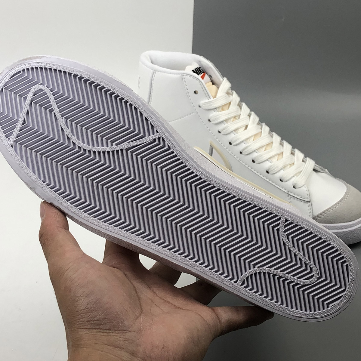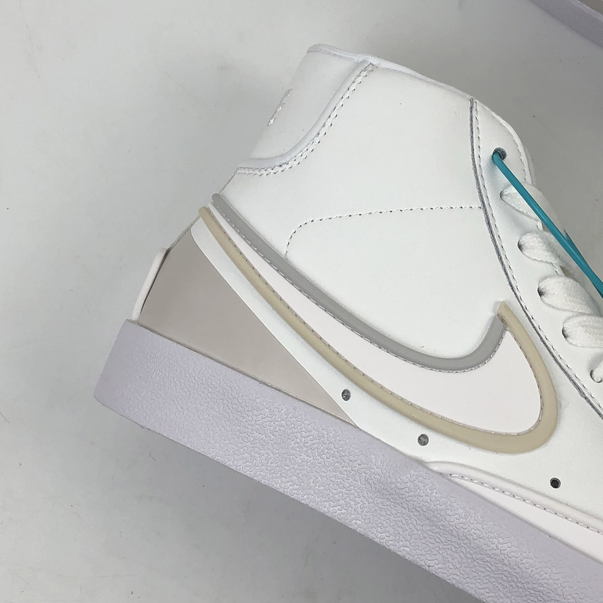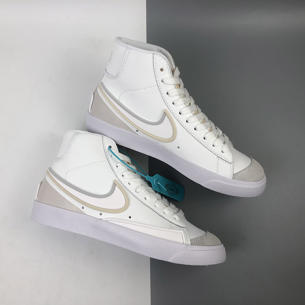 Dressed in a White and Sail colors scheme. This Nike Blazer Mid features a White leather base with synthetic material used on the bold Swooshes and overlays up front and heel. D/MS/X branding underneath the padded tongues atop a solid White rubber sole completes the design.