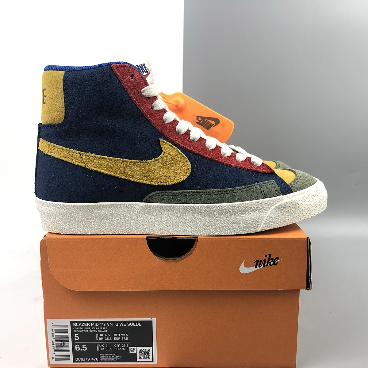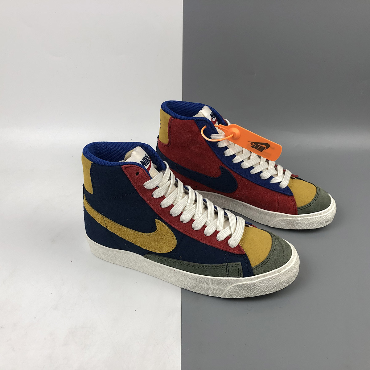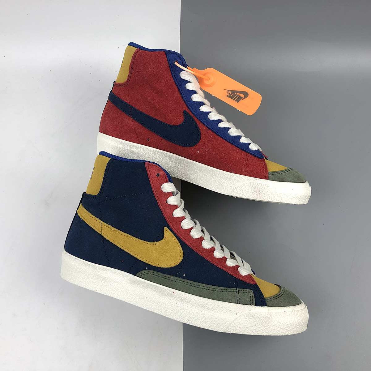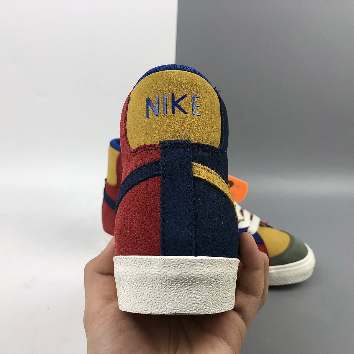 This Nike Blazer Mid comes dressed in a Coastal Blue, University Red, Spiral Sage, and Sun Halo Yellow color combination. Constructed with suede, mesh on the liner, and a nylon tongue. Furthermore, and the true highlight, we have Multicolor overlays that come with a patchwork look. Using a padded tongue covered in Sail with the same shade applied to the laces gives this pair a vintage look. Lastly, a Sail midsole and matching rubber outsole finishes the look.