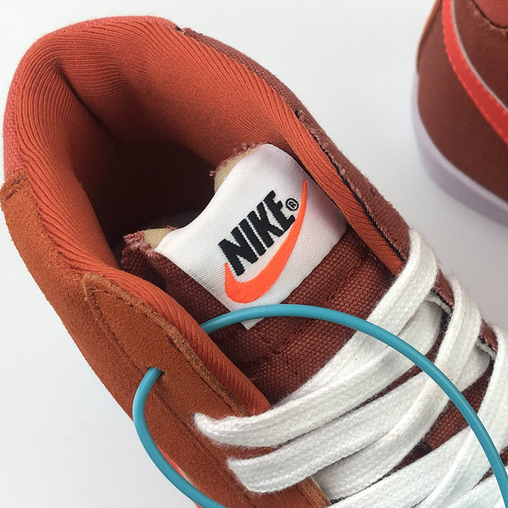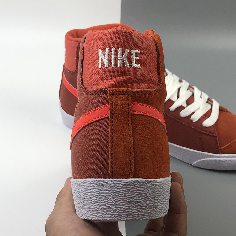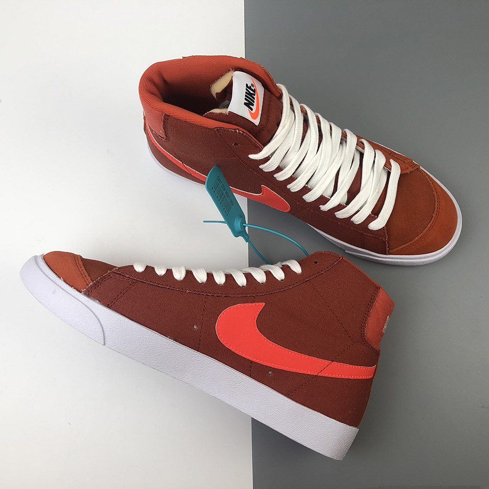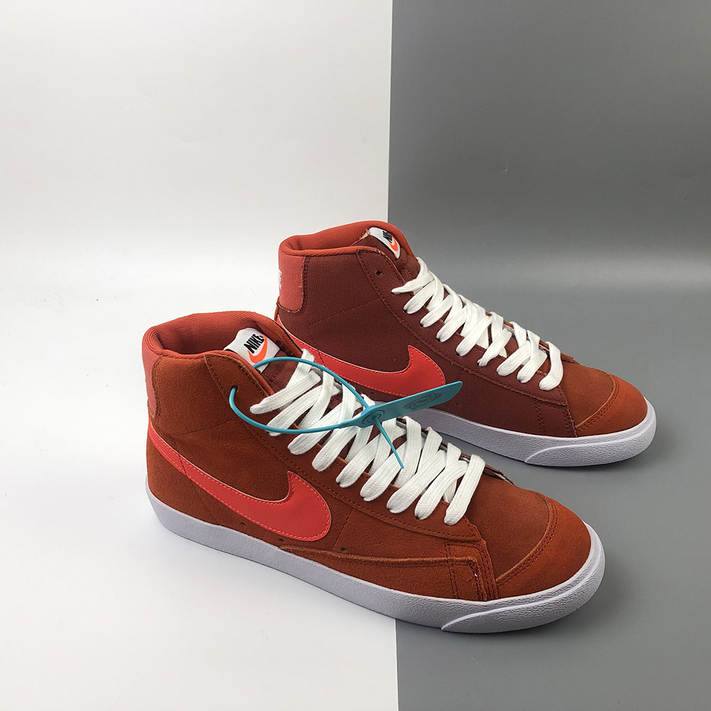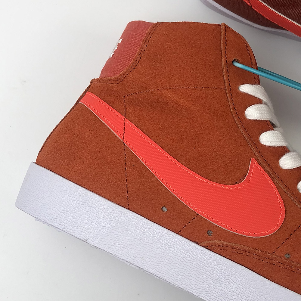 This offering of the Blazer features a Burnt Orange suede upper paired with textile Crimson Swooshes on the sides along with its signature padded collars. White laces atop a matching rubber sole completes the design.