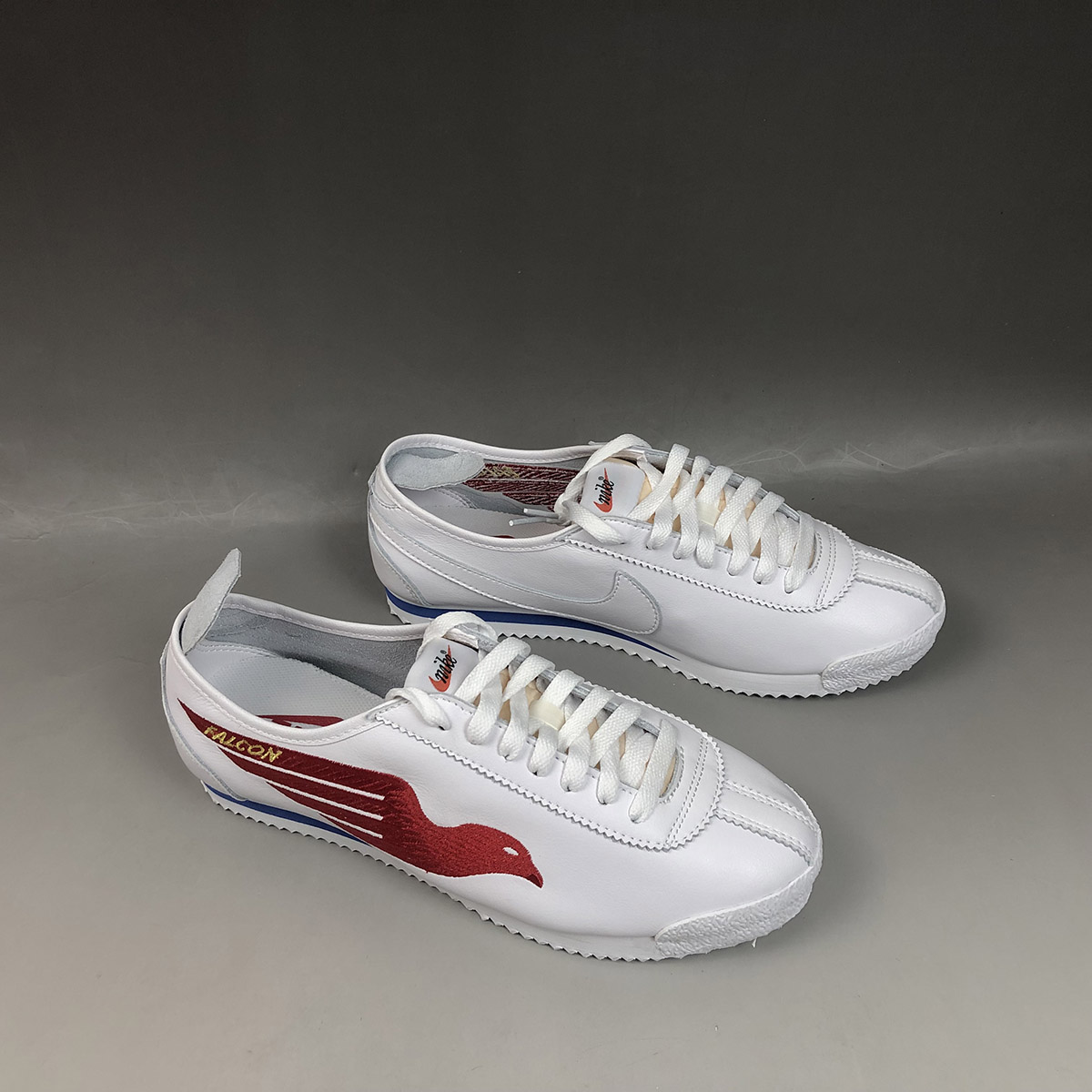 One features Carolyn Davidson’s original slim Swoosh, while the other two sports the Peregrine Falcon and Dimension Six logos that represents two other names considered by Phil Knight and Bill Bowerman. Each pair features an ultra-slim down build that nods to the original Cortez design.
