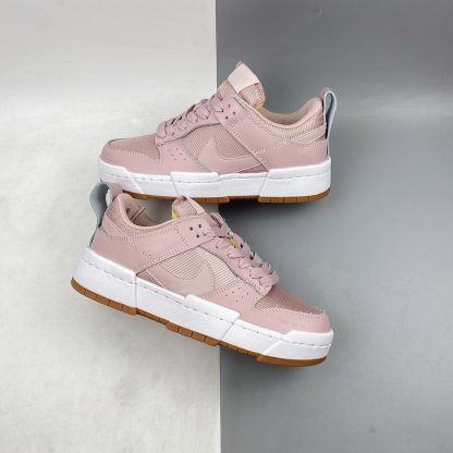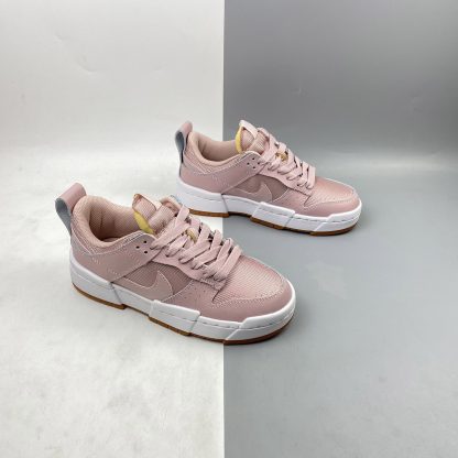 With a mesh fabricated upper and buttery leather pink overlays, the ventilated technology is optimised. The tongue is crafted with an exposed foam fabric as an element of the design; creating that industrial aesthetic while providing pure comfort. This rose-coloured body is graced with a smooth leather Swoosh to the side which is slightly hidden beneath the overlay. A heel tab arrives in the same dusty pink leather on the back more as a functional element than design. The striking midsole on this Dunk Low is the star of the show, creating a wider, more grounded-looking silhouette.