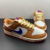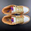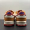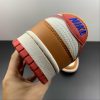 While not officially touted as a New York sports team-inspired colorway, the upcoming pair indulges in an orange and blue color combination reminiscent of the beloved Knicks, Islanders and Mets. Base layers on the kid’s Nike Dunk opt for an off-white look that allows for the overlays throughout the pair to pop that much more. Profile swooshes indulge in a gradient finish that’s similar to certain special editions of the Air Force 1. Ruby-colored flair enters the mix on the tongue label, upper heel panel and Air Jordan 1-like tread, complimenting the slightly-yellowed midsole.