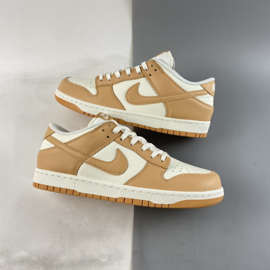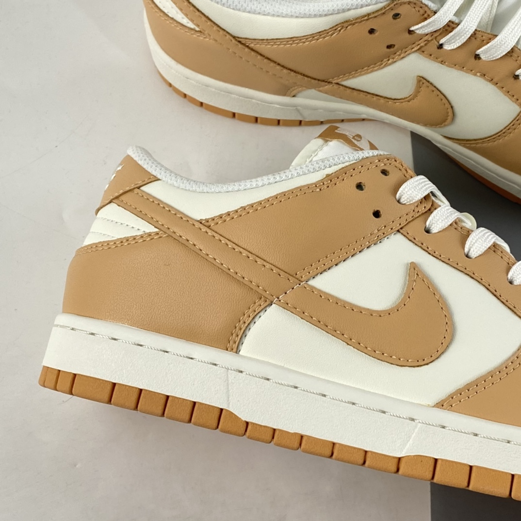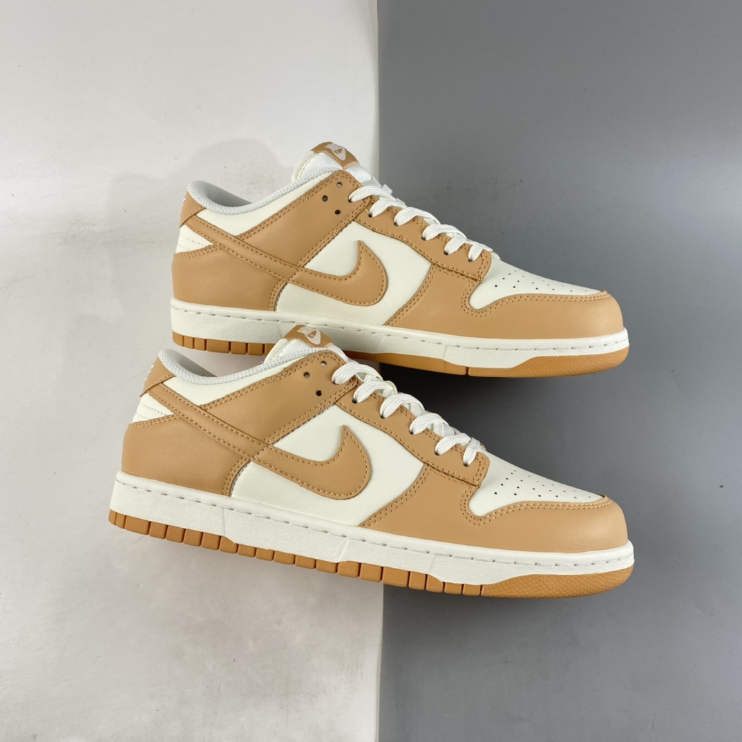 the Dunk is delivered in a two-tone construct, pairing staple white leather uppers with overlays of the titular hue. The fall-friendly hues continue at the tongue tag and insole branding and are joined by a complimentary gum rubber outsole to complete the design.