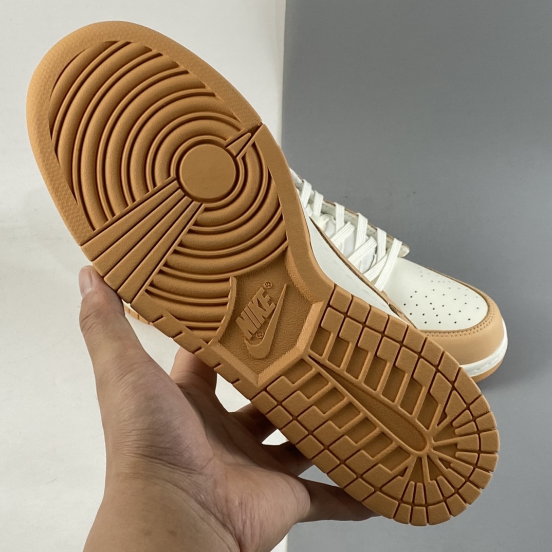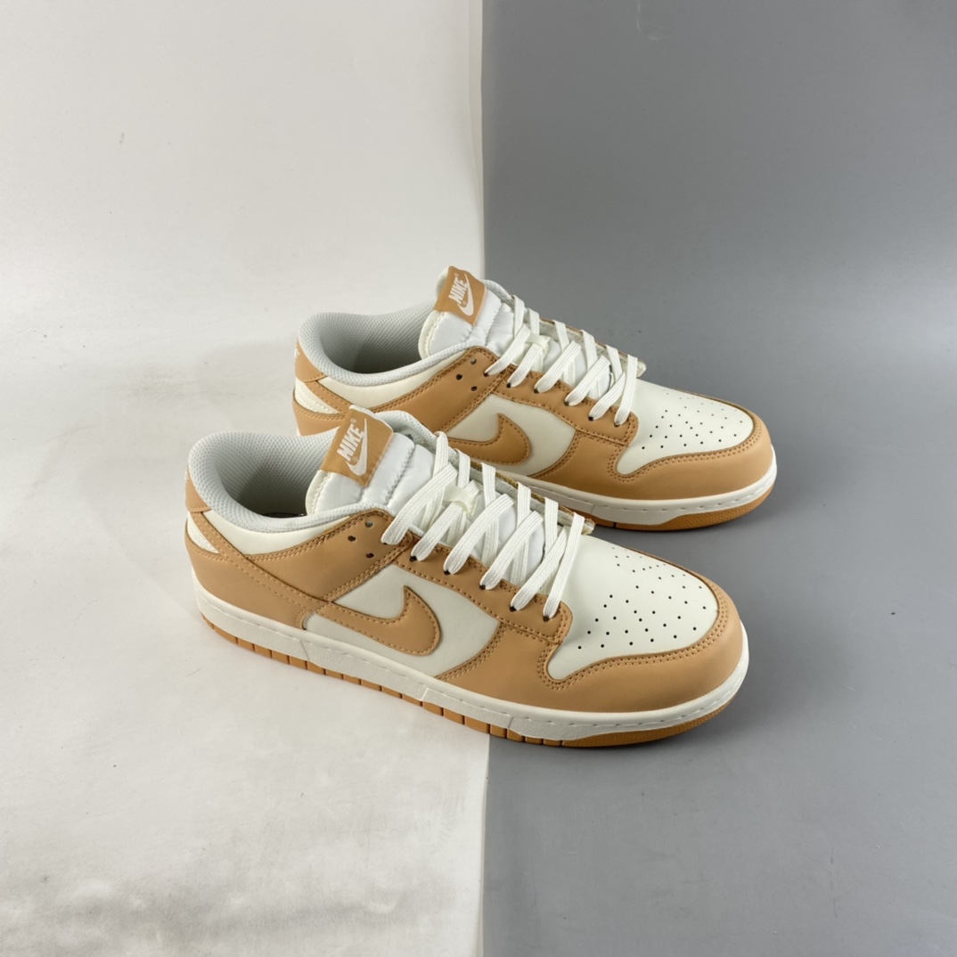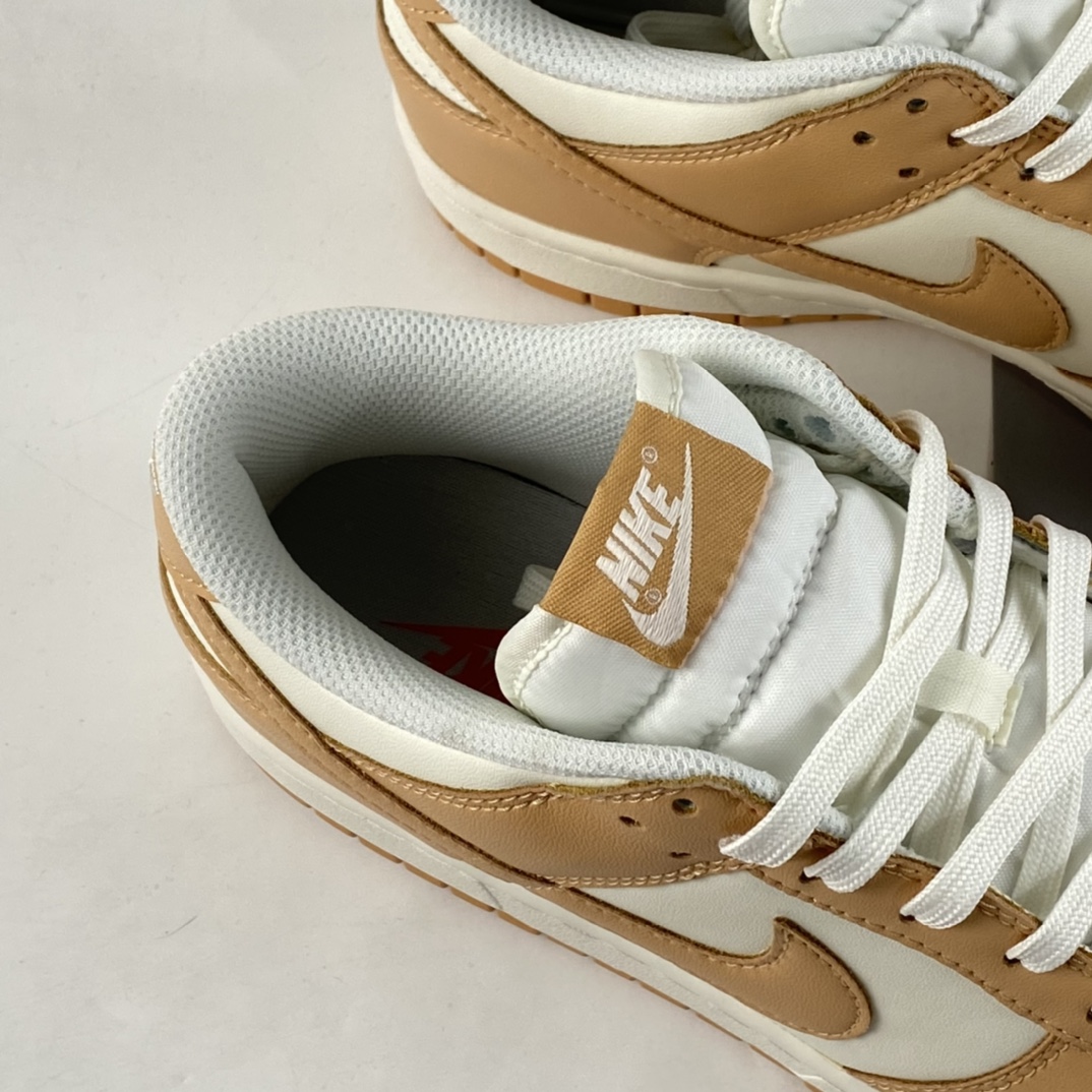 the Dunk is delivered in a two-tone construct, pairing staple white leather uppers with overlays of the titular hue. The fall-friendly hues continue at the tongue tag and insole branding and are joined by a complimentary gum rubber outsole to complete the design.