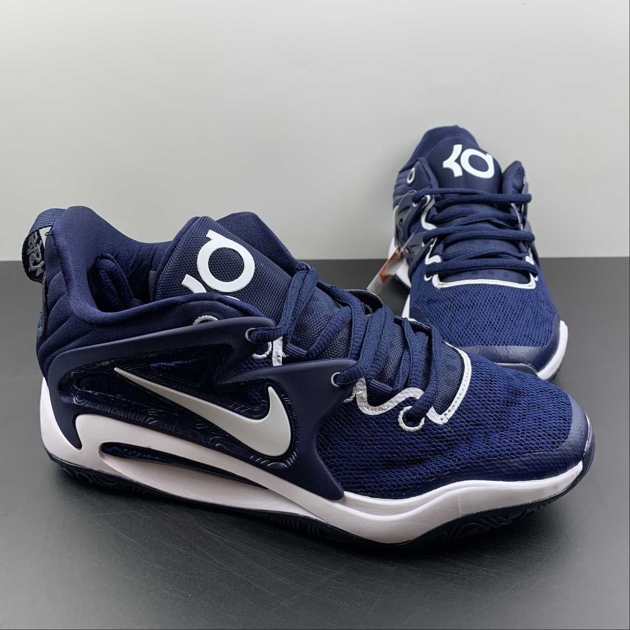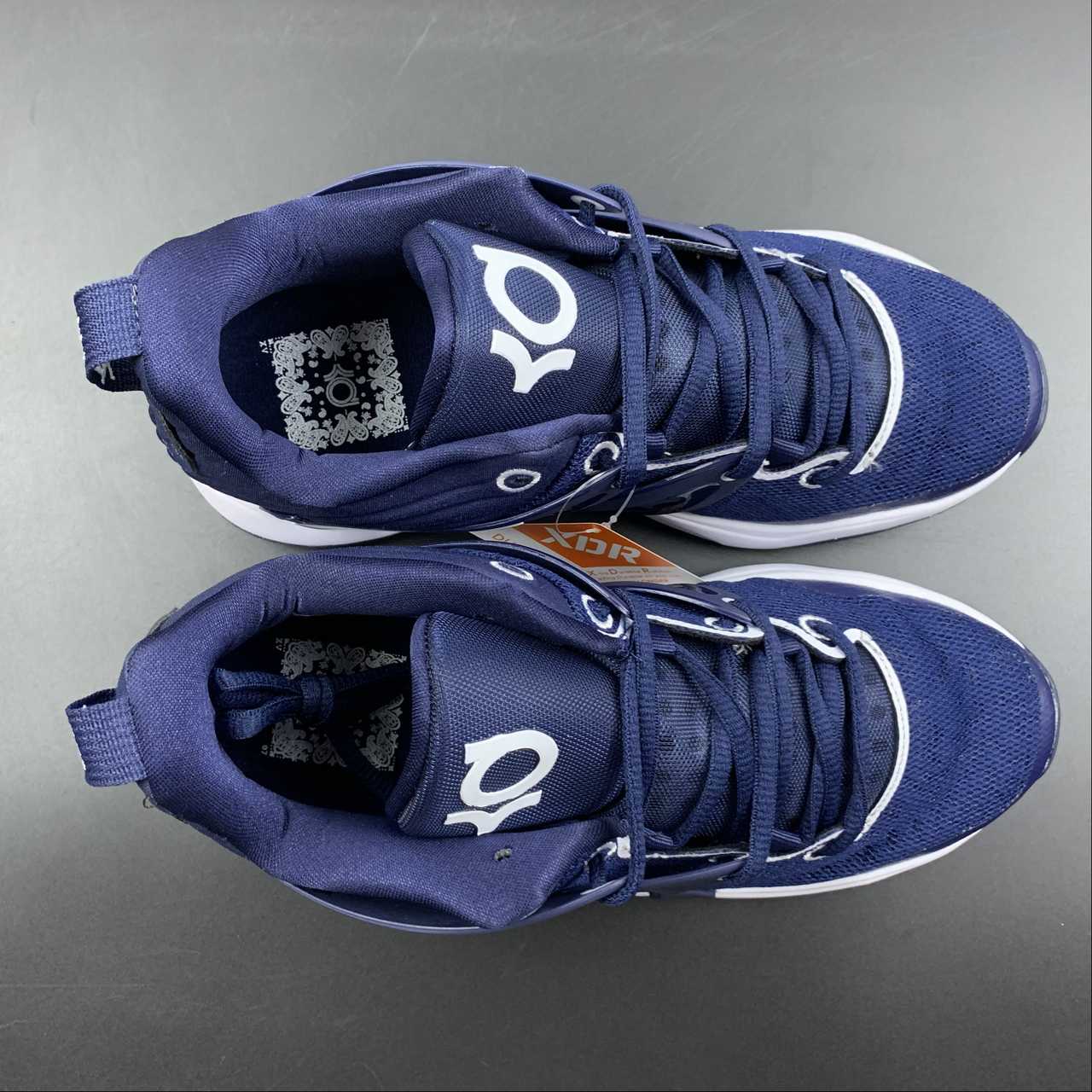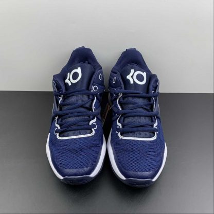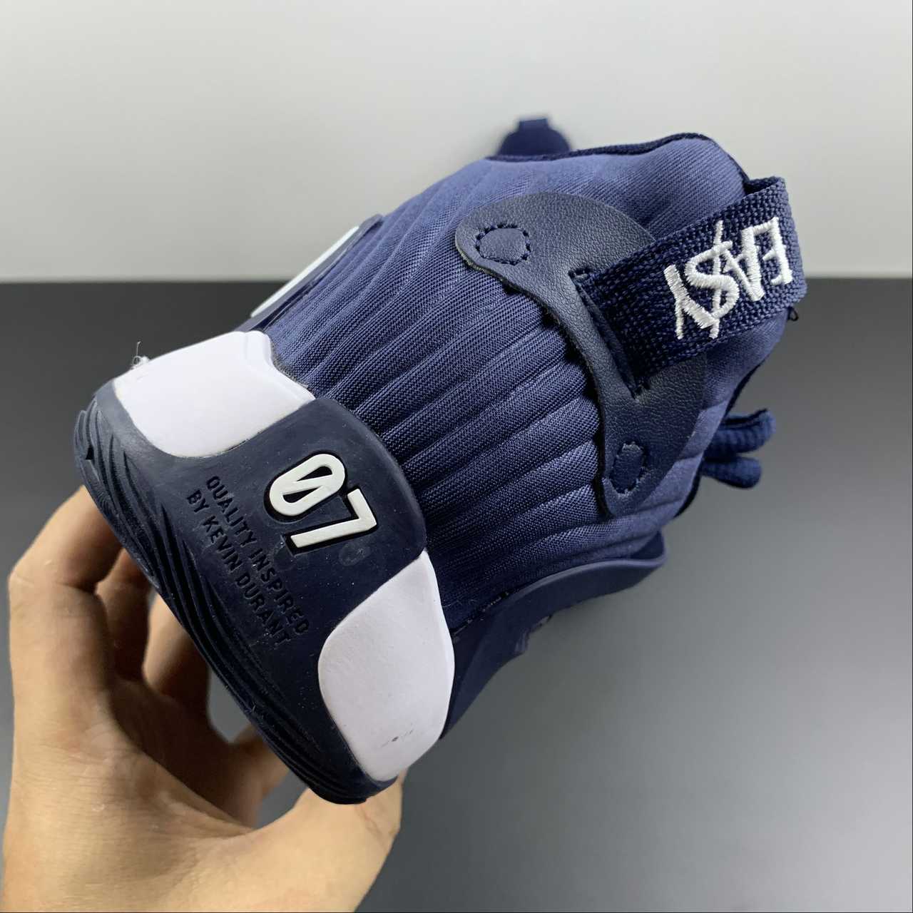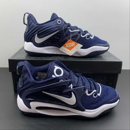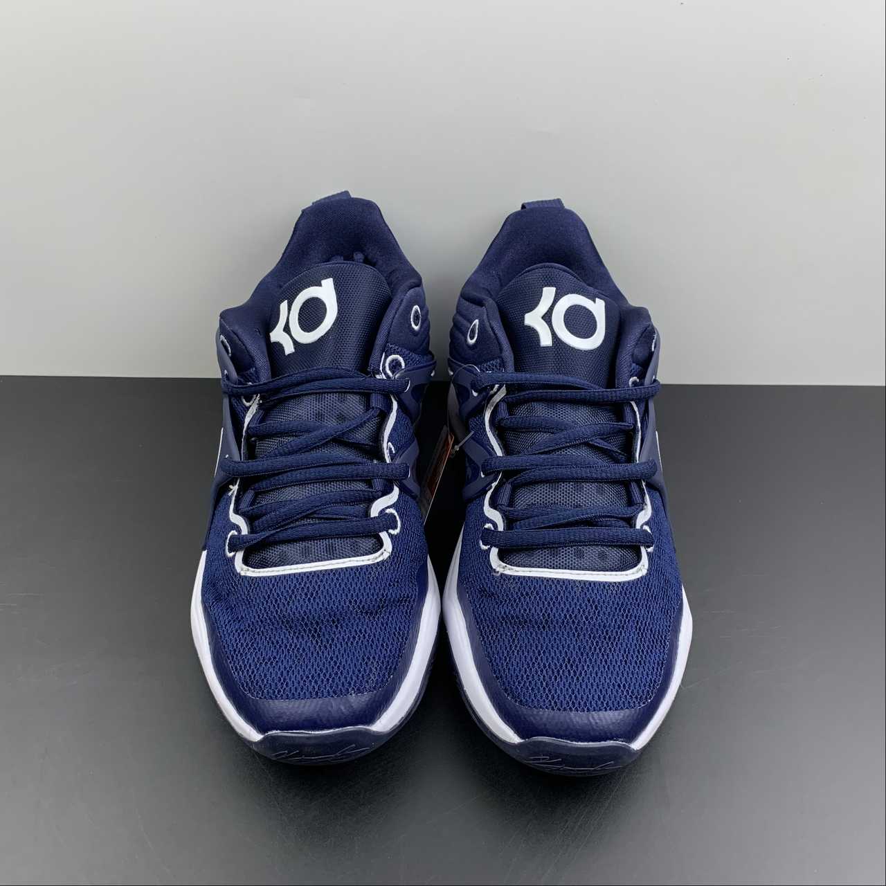 The titular navy hue hits almost everything, from the engineered mesh upper to the heel encasement and the midfoot clip. Tongues, liners, and rear pulls follow suit, before a handful of contrasting white pops break up the sea of blues. The tongue KD motif joins the Swoosh, midsole, and eye stay detail in striking white, before blue returns once more at the outsole to complete the design.