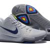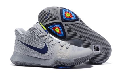 This Nike Kyrie 3 comes dressed in a Cool Grey, Anthracite and Polarized Blue color combination. While the base is predominately covered in Cool Grey, Turbo Green is seen on the Kyrie branding on the tongue, insole and sole. Following we have accents of Anthracite while Polarized Blue is also spotted on the outsole.