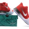 This Nike Kyrie 3 features a Red-based upper with Black detailing on the inner liner and tongue. Also included on this player exclusive is a gradient Nike Swoosh and matching speckled midsole sitting atop an icy outsole.