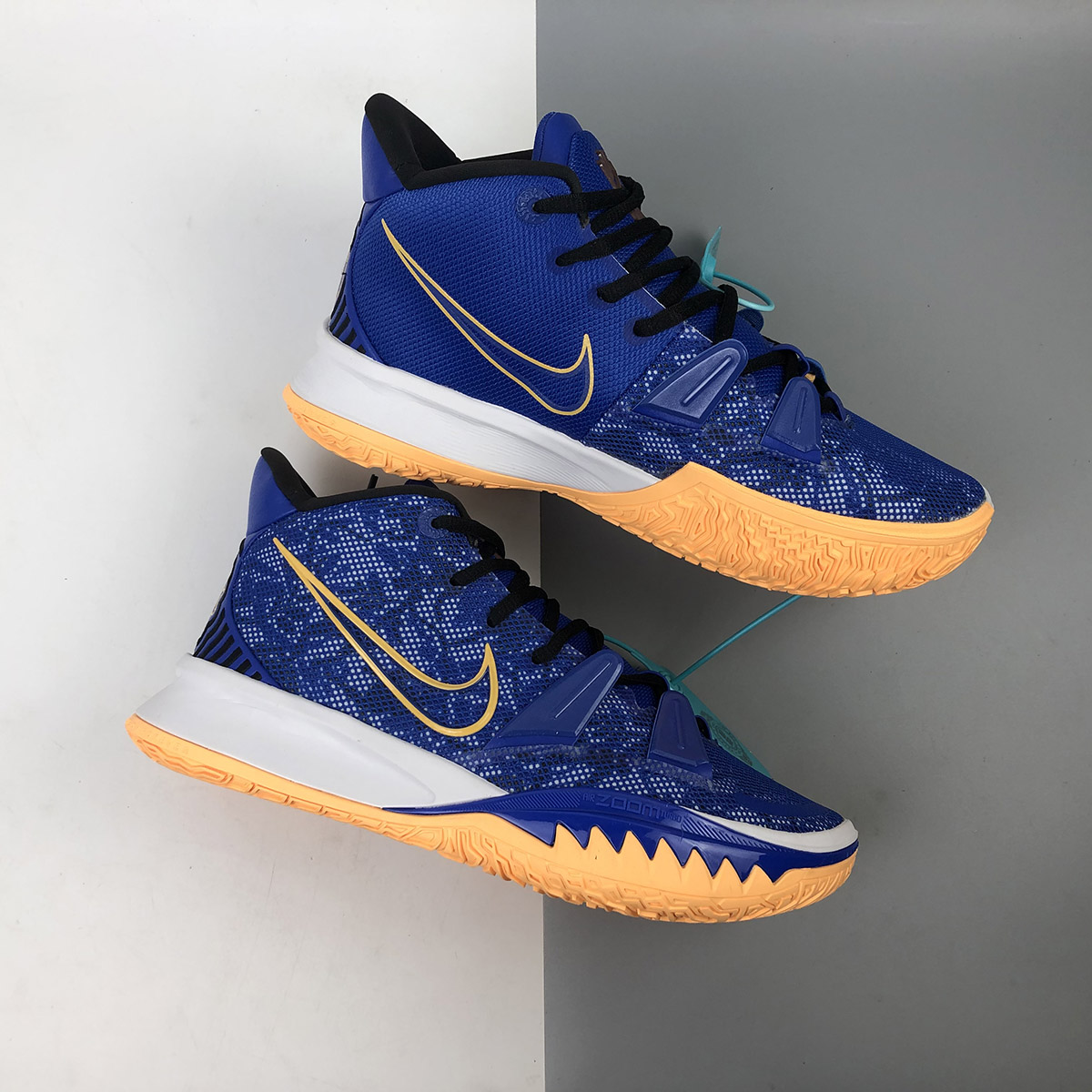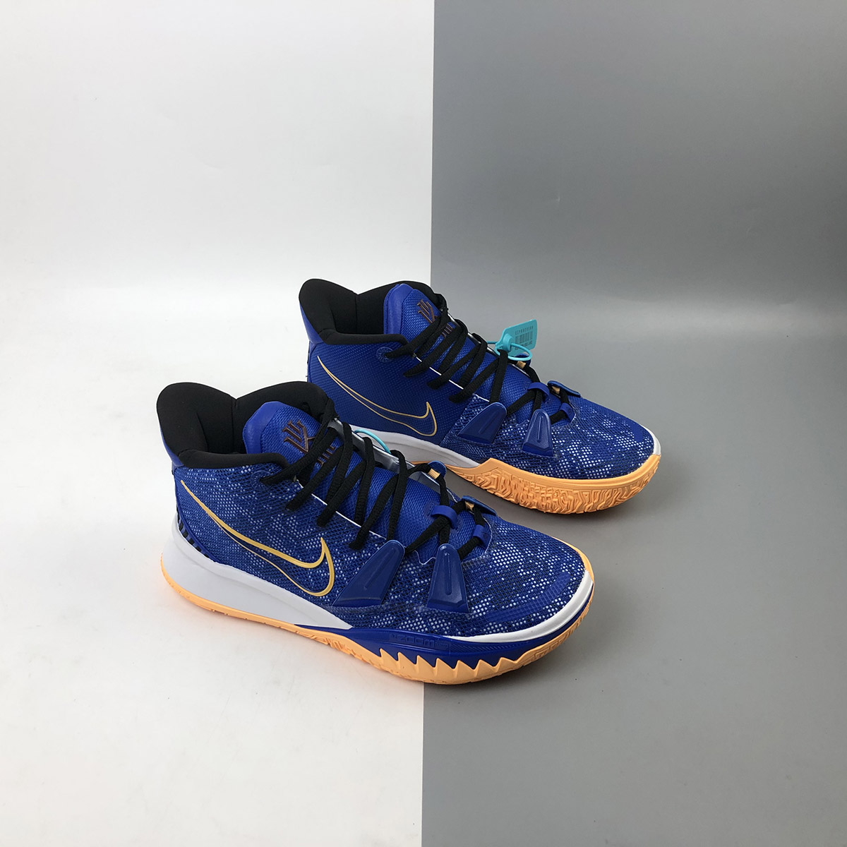 Dressed in a Hyper Royal, Black, Melon Tint, and White color scheme. This Nike Kyrie 7 features an allover print used throughout Nike’s “Sisterhood” collection underneath its Blue mesh upper, while having pops of Melon Tint on the Swoosh and back heel, which features a sun and moon graphic on each shoe as a message of balance. The same pastel hue is used on the rubber outsole that’s equipped with an innovative 360-degree traction pattern based on computer data.