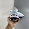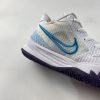 This Nike Kyrie Low 4 features a White, Laser Blue, and Dark Raisin color combination. Utilizing White on the upper along with a molded cage overlay on the forefoot. Next, we have Laser Blue accents and Dark Raisin on the Swoosh logo on the medial side and the rubber outsole.