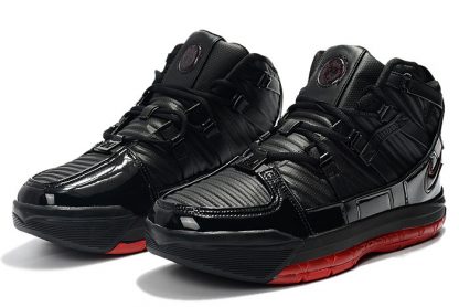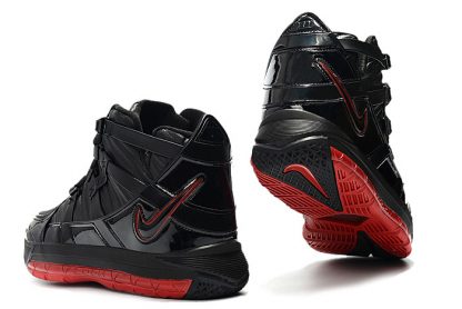 Nike Air Zoom Lebron 3 was made to play. The soles were made so when Lebron James running up and down court, he did not have to worry about falling. Nike also added reinforcing TPU clip to prevent ankle injuries. The middle of the sole contained a carbon fibre shank plate which provided Lebron with more support. The Nike Air Zoom Lebron III also had full length Zoom Air units, giving additional cushioning for Lebron James. When observing the LBJ III it is sort of similar to the Air Jordan XI (11). On the sides their are straps running to the lace loops, only difference is they are not sewn on.