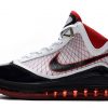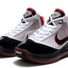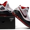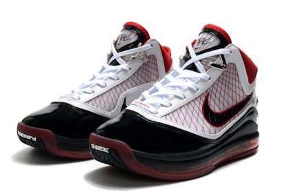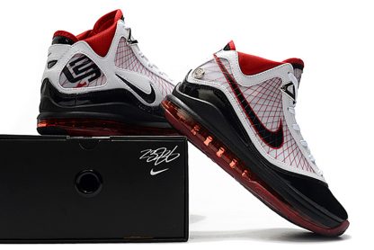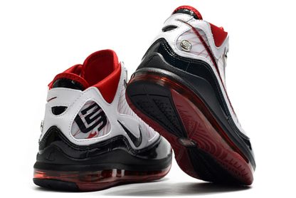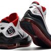 The shoe was rebuilt from the ground up, featuring a full-length Air Max cushioning system and Flywire cables, which are visible through the translucent side walls. Incorporating a black, white and red color scheme, this model is also accented by metallic hits on the top eyelets and heel branding.