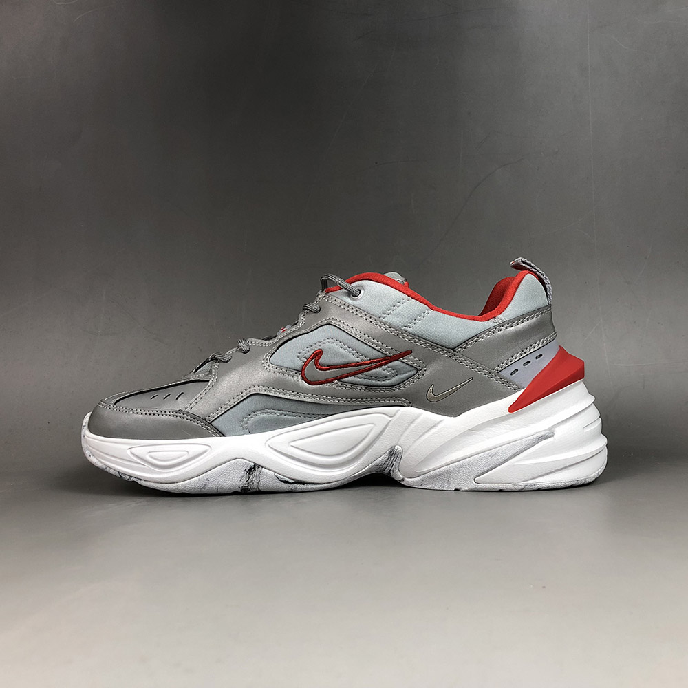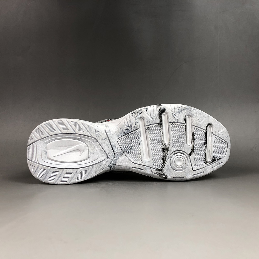 Nike’s M2K Tekno made a large impact on sneaker culture at the most opportune time, taking advantage of the recent bulky silhouette trends that have become so massively popular in recent years. With the original Monarch at the core of its DNA, the updated model opts for a slightly sleeker profile though its intricate panels remain characteristic of the original. The sole unit is aggressive in design, arriving now with a marble print along the outsole, matching well with the metallic silver palette found on its upper. Accents of a contrasting orange sit on the various logo hits, lining, and heel cap, defining the release as a perfect fit for the season.
