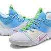 Dressed in a combination of water-themed color tones. This Nike PG 3 features a White mesh upper with Aqua Blue and Bright Green accents throughout. Finishing off the design is a Light Grey Swoosh on the midsole and a fish logo embroidered on the heel.