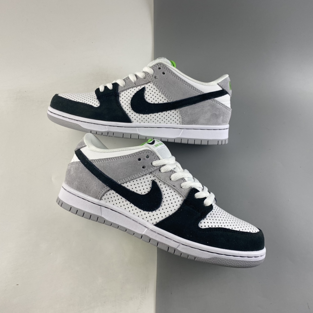 The sneaker features a Medium Grey/White-Chlorophyll-Black color makeup as the shoe starts off with a White perforated base which is then joined by black and grey suede overlays on the toe, midfoot, eyestay, ankle, heel, and Swooshes. Chlorophyll Green is then present on the tongue tags and heel branding along with a white midsole and grey rubber outsole to finish things off.