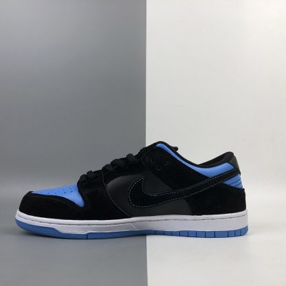 Black and University Blue share the leather upper of this Nike SB Dunk Low, but without the soft blue hue breaking up the look on the quarters. Instead, there’s a black Swoosh on a black leather panel, only contrasted by a blue stitch outline. A traditional white midsole and blue outsole wraps things up below.