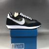 the pair shown which comes dressed in a Black and White color combination. Looking closer it comes constructed with mesh and suede on the upper, leather Nike Swoosh logos and rubber waffle outsole. Other highlights includes a vintage foam tongue and Nike branding on the heel pull tab.