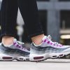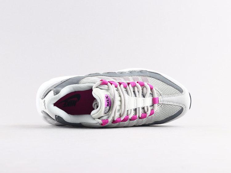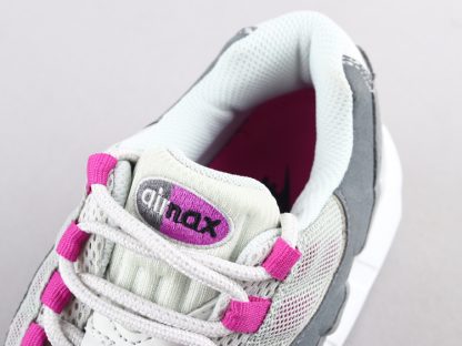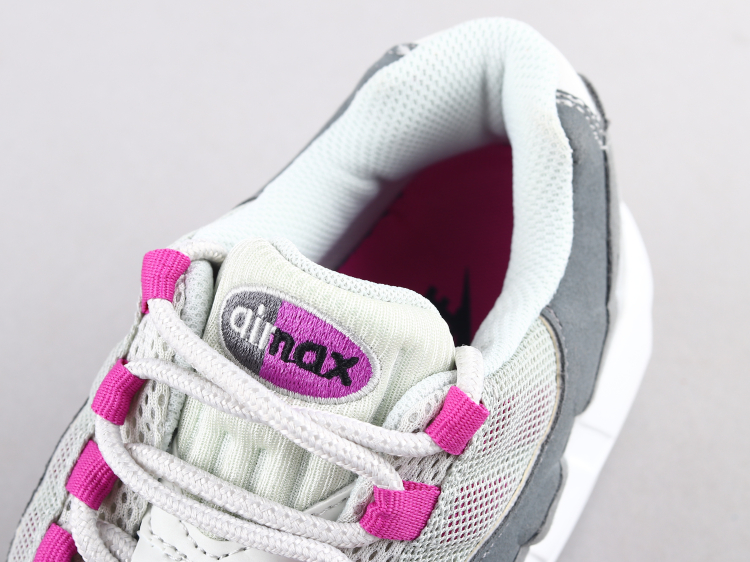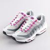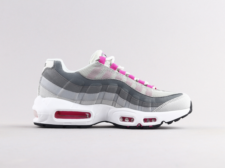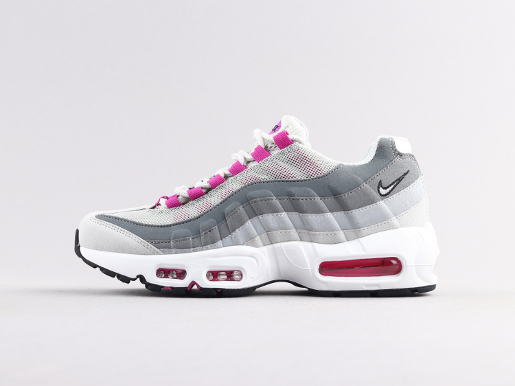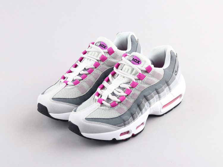 the Nike Air Max 95 arrives in yet another all-new look. This time it’s exclusively for the ladies, featuring a clean and bright feminine look in shades of grey and white with accents in “Hyper Violet”. Looking reminiscent of a few OG colorways, the 95’s signature gradient paneling is present, going from dark up top to light at the midsole, while pops of the bright violet hue are found on the lace loops, tongue logo, and visible Air units