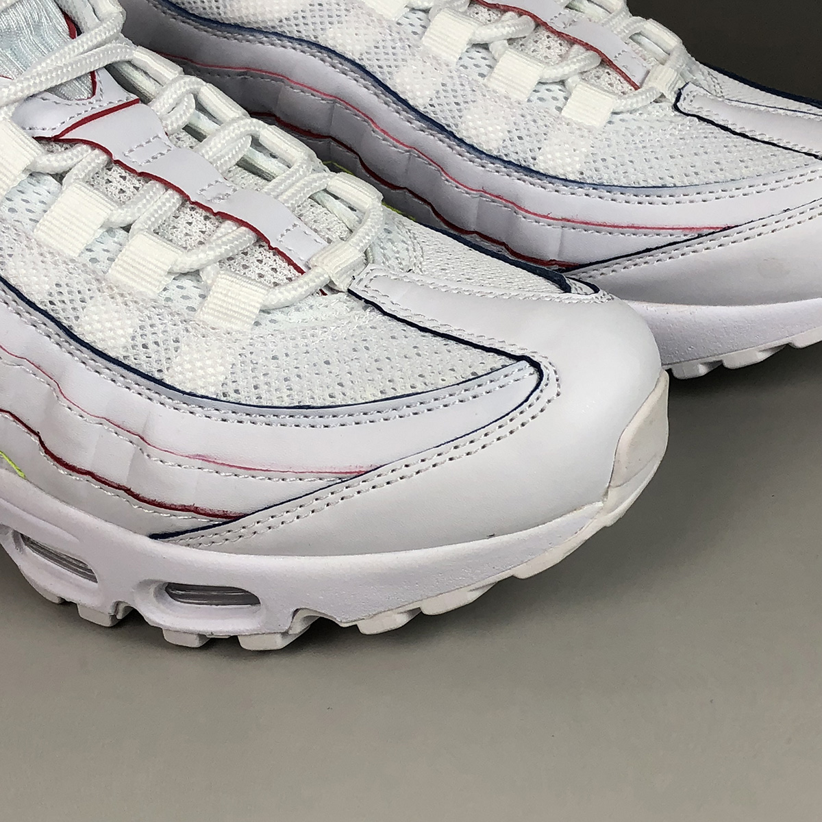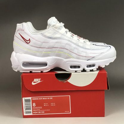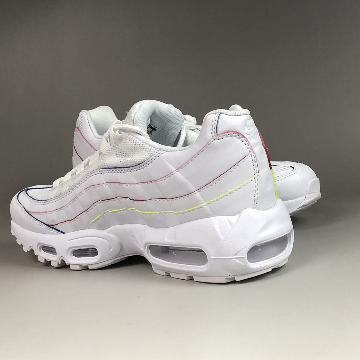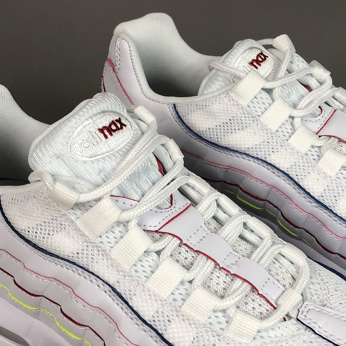 Nike Sportswear is getting its Air Max loyalists ready for the Summer with this women’s-exclusive Air Max 95 selection. Almost entirely adorned in “Triple White”, its borders boast a whimsical rainbow pattern that ranges from a soft red to a dark blue on its upper – an effect achieved by exposing the inner layers of the synthetic layer