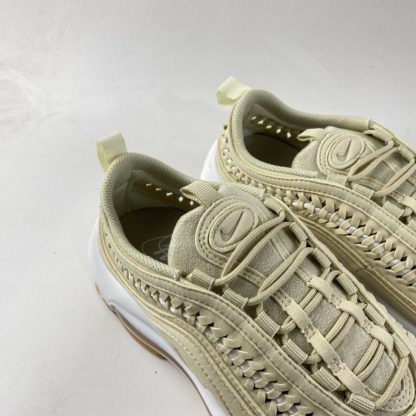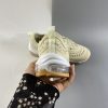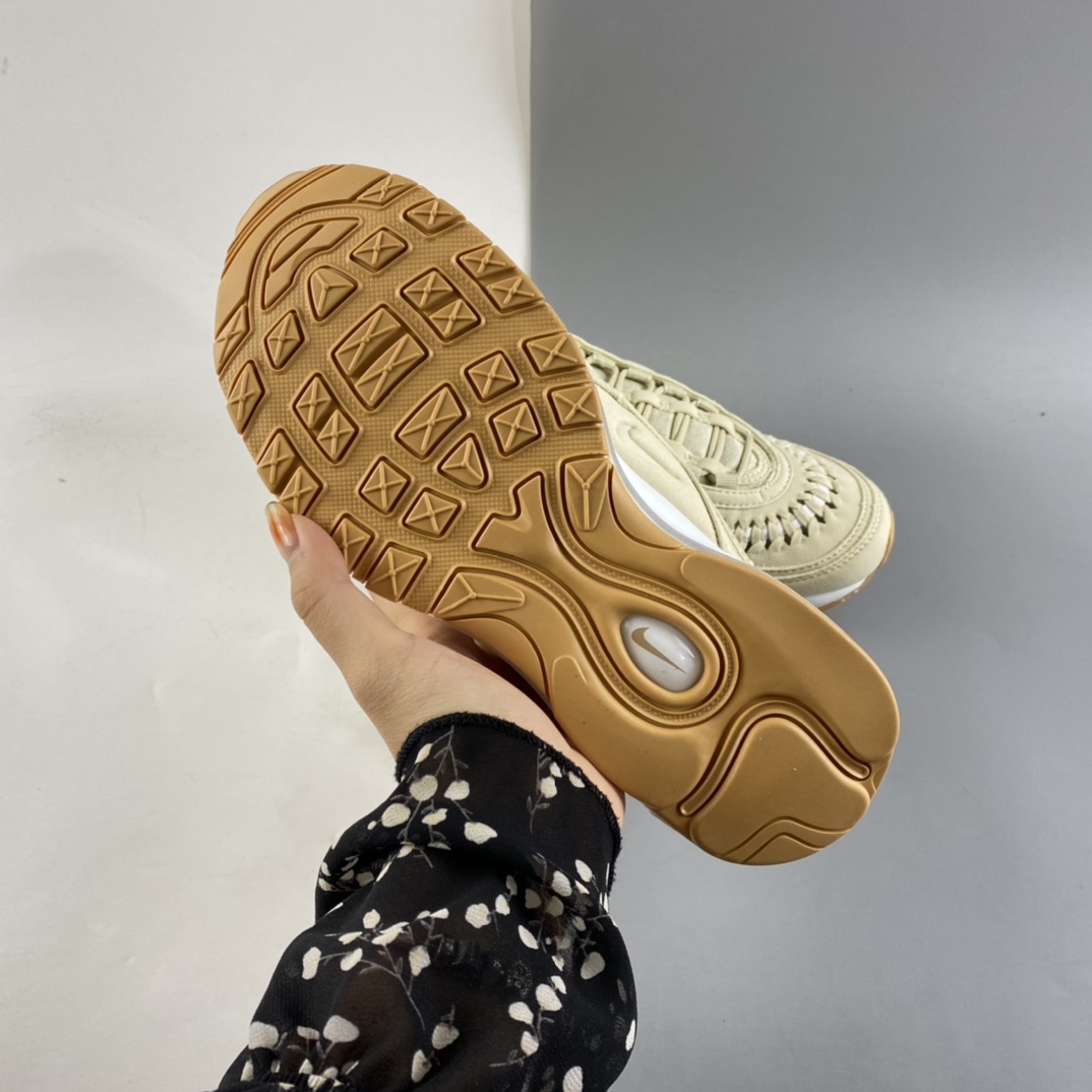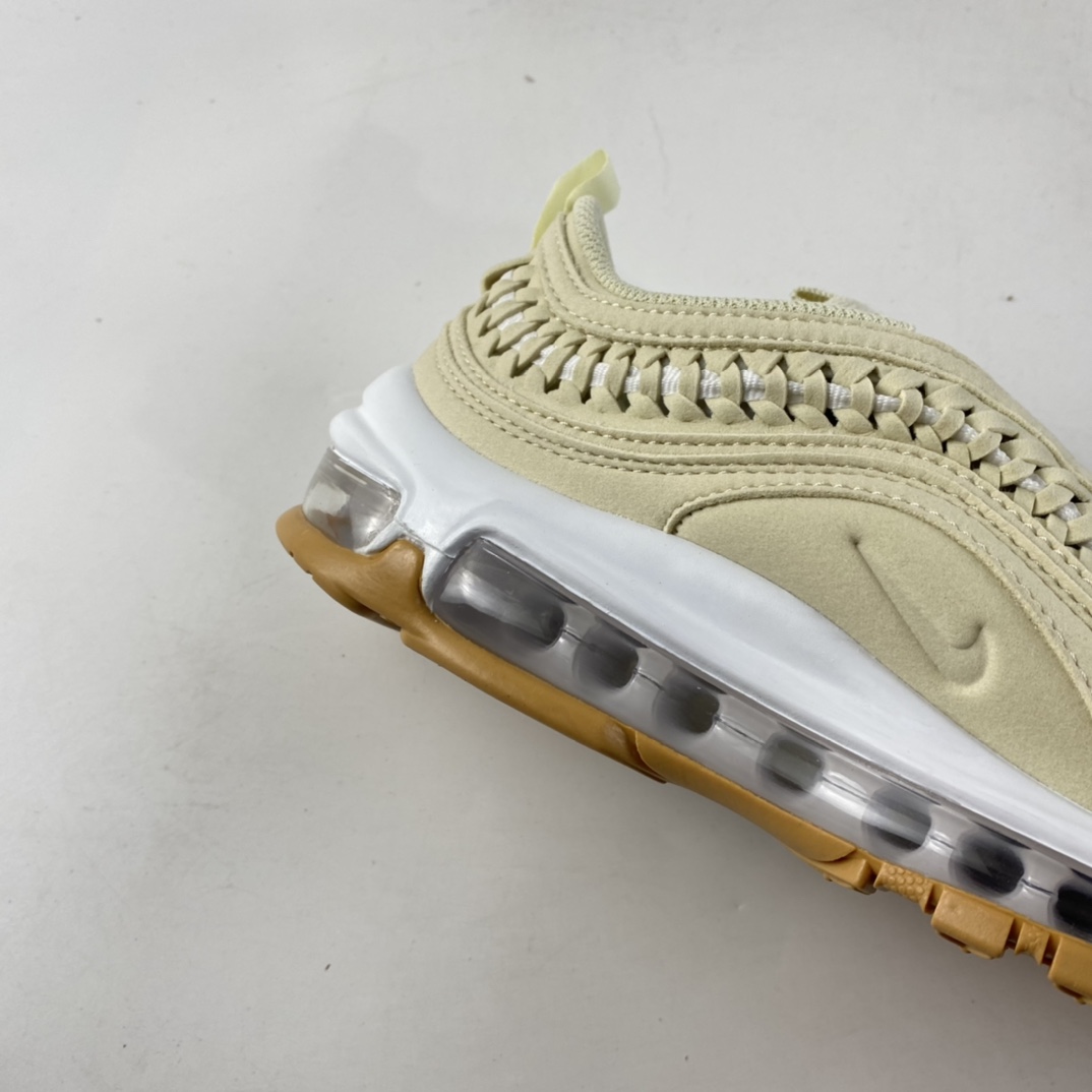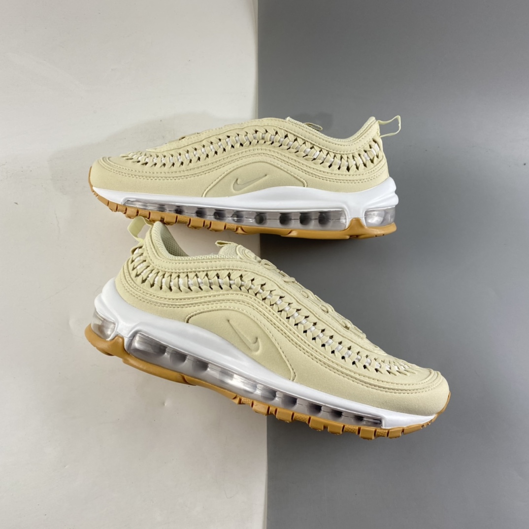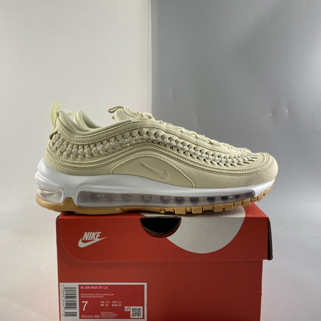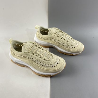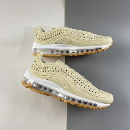 Pristine and stylish, the low-top bears a bright yellowish tan hue across its textile upper which has been modified with the thematic woven element across that provides additional ventilation and flair. Finally, a white and gum rubber outsole rounds out the overall profile.