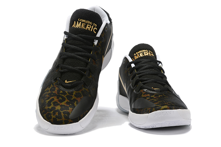 This Nike Zoom Freak 1 features leopard print across the upper which resembles the attire Eddie Murphy is wearing on the cover of the film. In addition we have White on the liner and midsole while a large Gold Swoosh is used. A translucent outsole which comes onto the panels also features speckled detailing while ‘Coming to America’ is embroidered on the tongue.