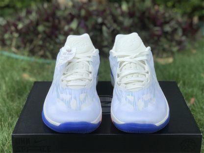 Inspired by motion, the Nike Air Zoom GT Cut 2 has a sleek upper with a dynamic pattern that mimics movement. The upper has an blue/white underlayer that is topped with a thin mesh overlay, which further provides a sense of movement to the pattern. The midsole is carved out with pristine curves dressed in blue, giving an elevated finish to the sneaker. The outsole has a yellow/orange appearance, with the orange accent also on the sneaker’s inner heel clip. A white Nike Swoosh on the quarter and midsole completes the design.