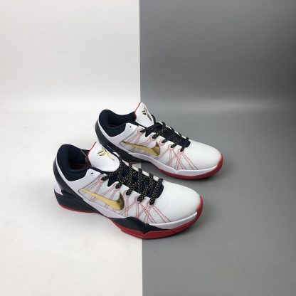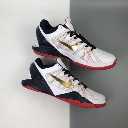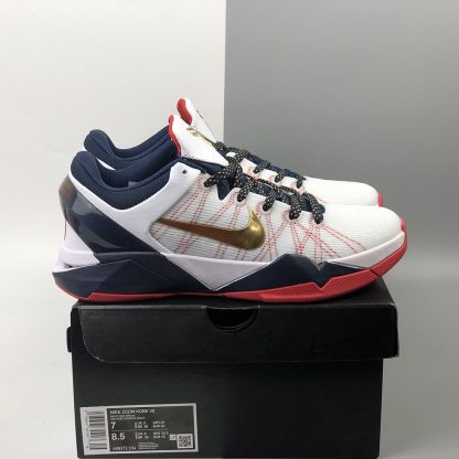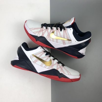 This pair of Nike Zoom Kobe VII’s are a part of the “Gold Medal” Pack. Made to commemorate Team USA winning the gold medal at this years summer Olympic games.