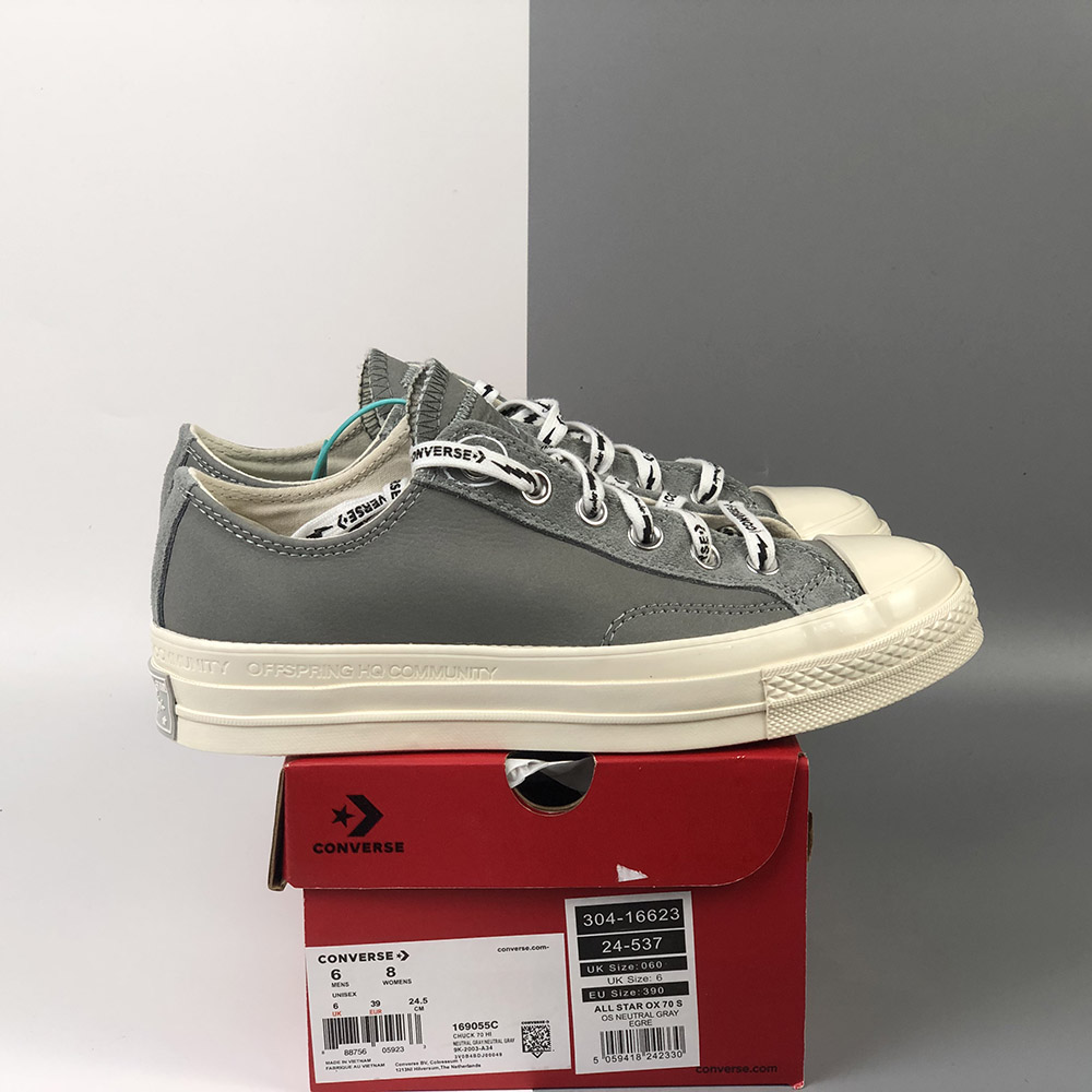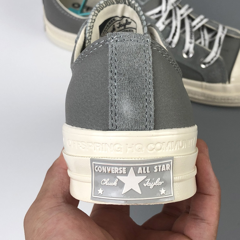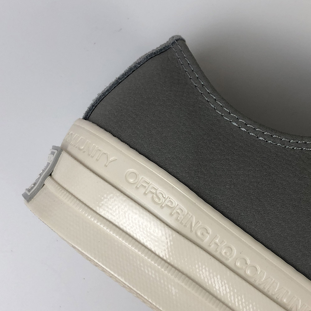 While we haven’t seen too many images of the latest joint effort from the duo yet, we know that it’s going to be a Converse Chuck 70 Low, one of the most iconic sneakers of all time. Decked out in grey suede, the clean-cut model is branded with Offspring logos alongside classic Converse logos for a dual-branded look, with silver-tone metal eyelets breaking up the understated design.