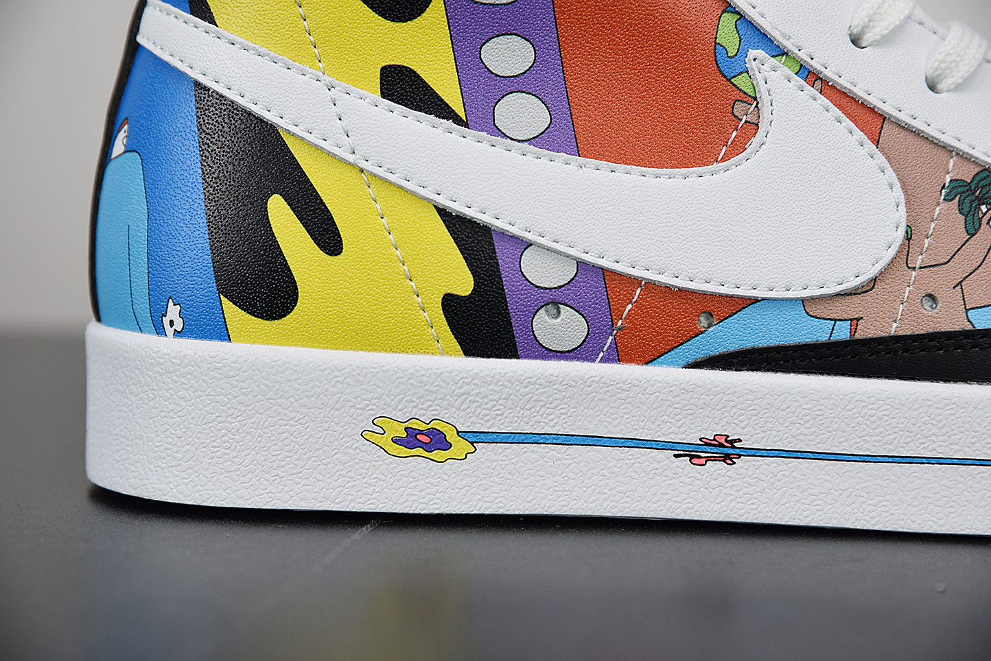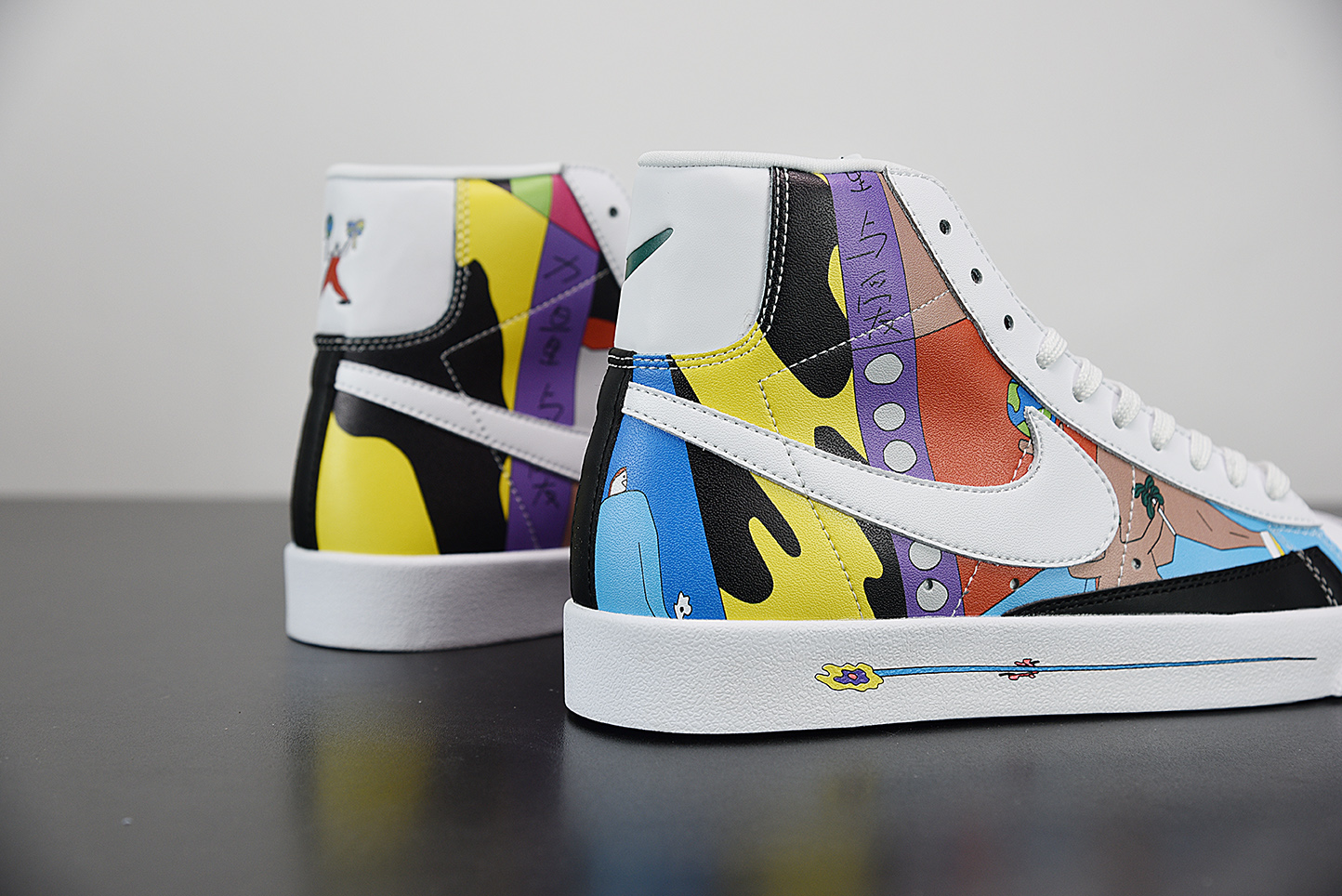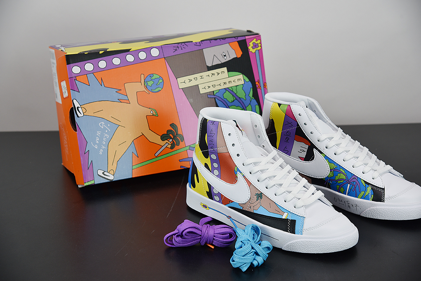 A Ruohan Wang x Nike Blazer Mid ’77 is releasing before the end of the year. Like the other pairs in the upcoming collaborative collection, a colorful upper takes place as a reflection of Wang’s art and artistic style. The colorful addition to the sleek model only adds to the shoe’s wearability.