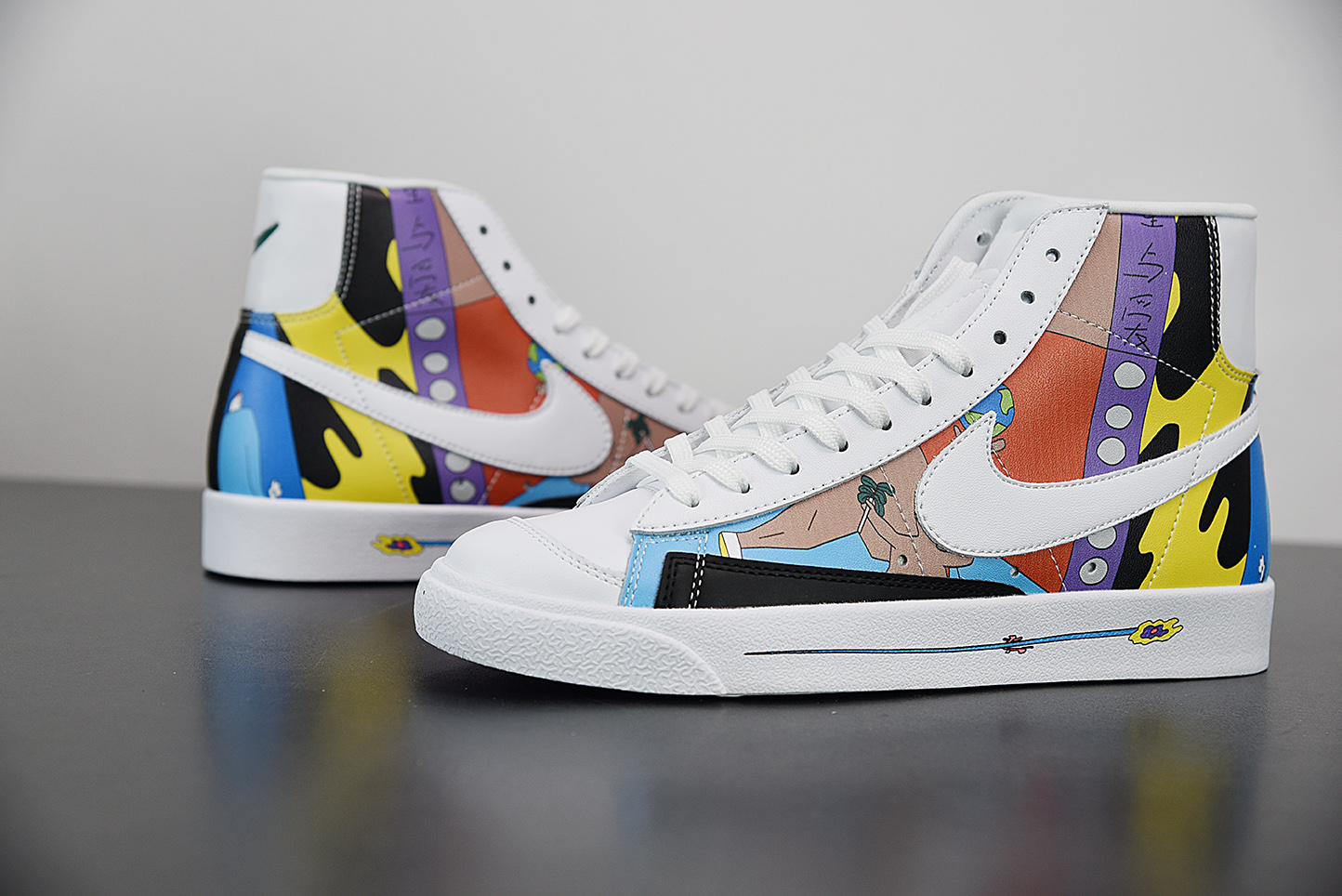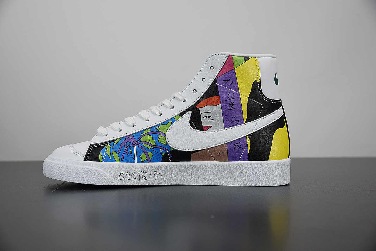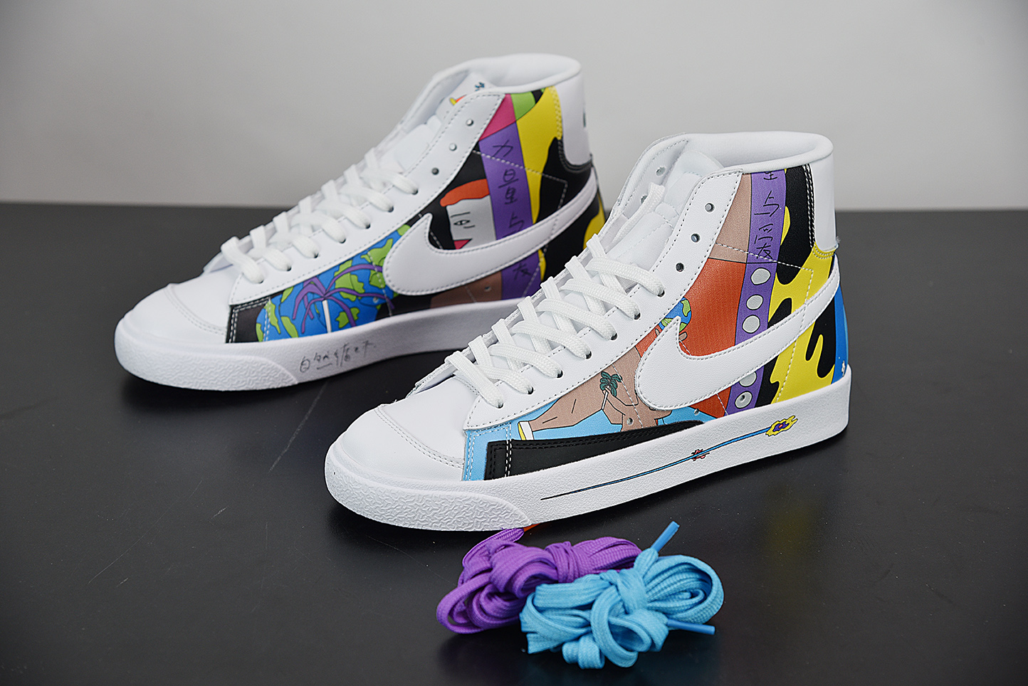 A Ruohan Wang x Nike Blazer Mid ’77 is releasing before the end of the year. Like the other pairs in the upcoming collaborative collection, a colorful upper takes place as a reflection of Wang’s art and artistic style. The colorful addition to the sleek model only adds to the shoe’s wearability.