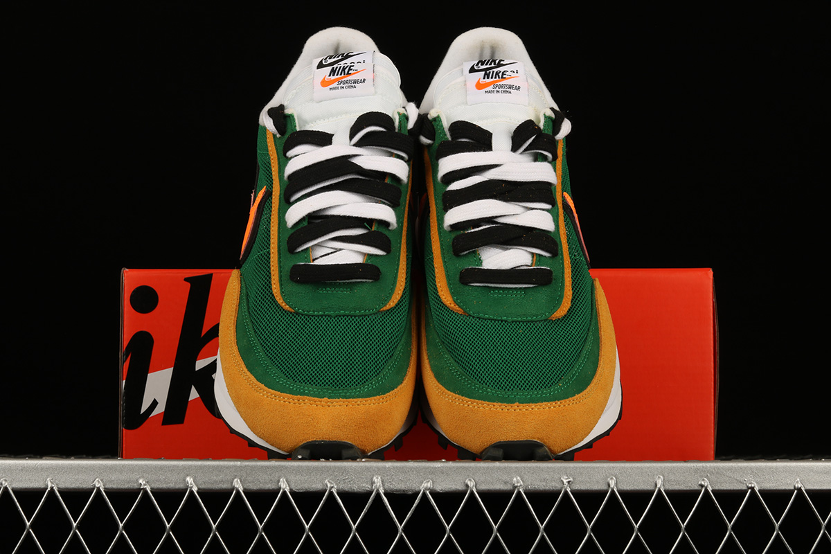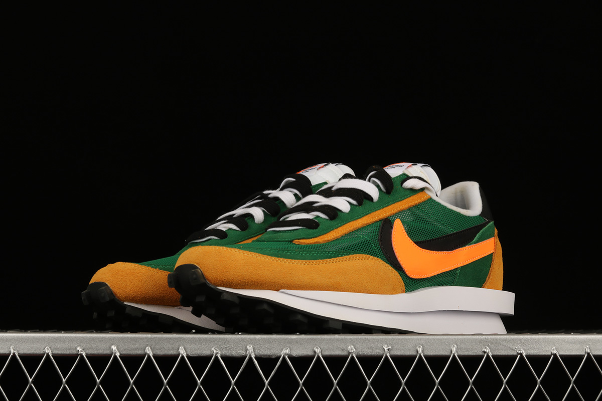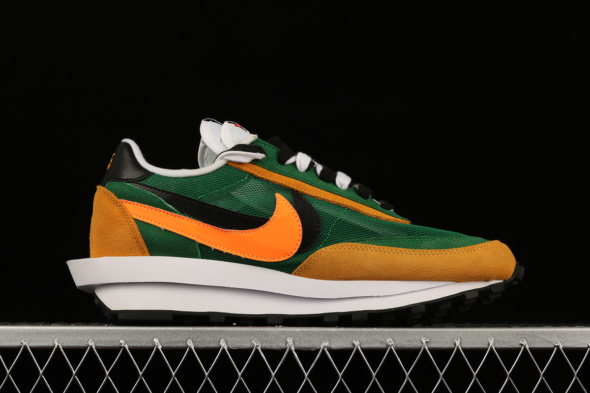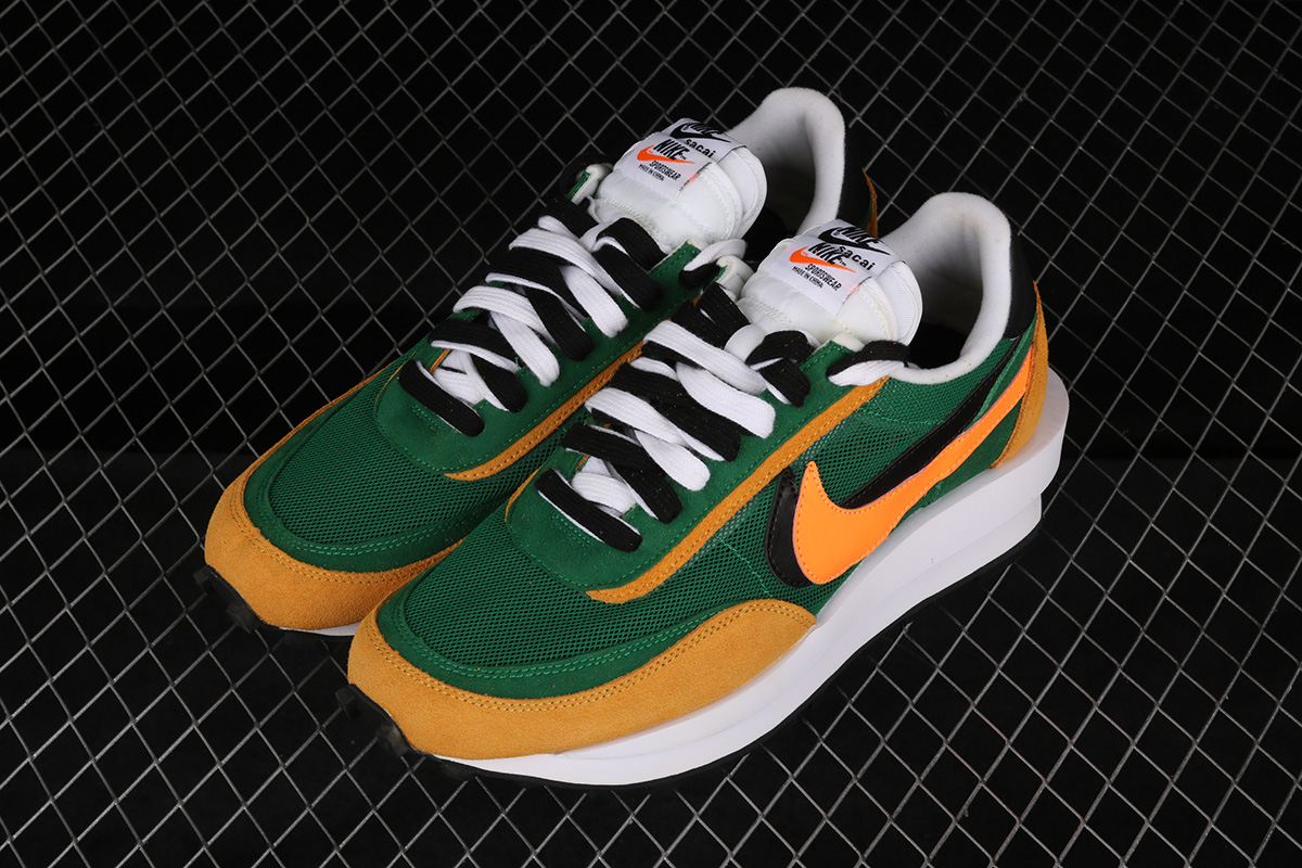 It all starts with that mesh lining which features in a vibrant shade of green. Premium suede overlays contrast in a mustard colourway whilst a dual Swoosh sits proudly against the sidewall. To complete the look, a chunky midsole features whilst dual branding celebrates this Nike and Sacai partnership.