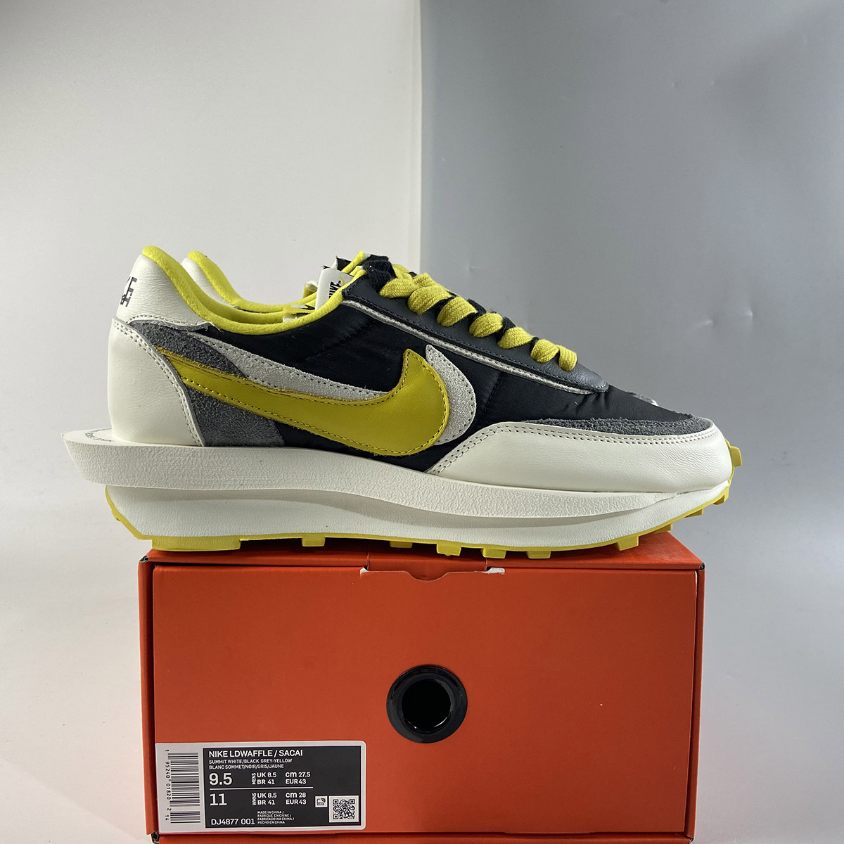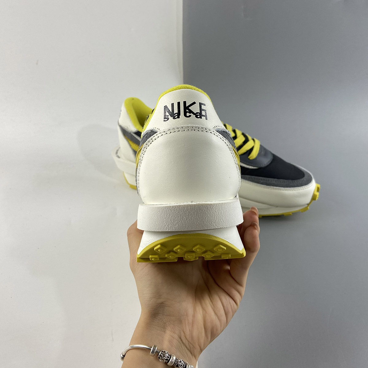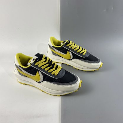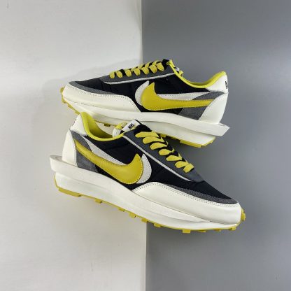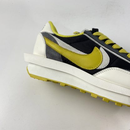 And what they’ve come up with is a rather simple solution replete of both designers’ DNA. Chitose Abe’s painstakingly made form is left intact, baring all of the silhouette’s signature doubled motifs. It seems Jun Takahashi is the one doing the heavy lifting in terms of the colorway, as the base layers blacks under greys under yellows in a fashion reminiscent of his past works. Adjacent, the laces, tongue, and lining complement more or less, while the toe cap, counter, and midsole opt for a much more understated ecru shade.