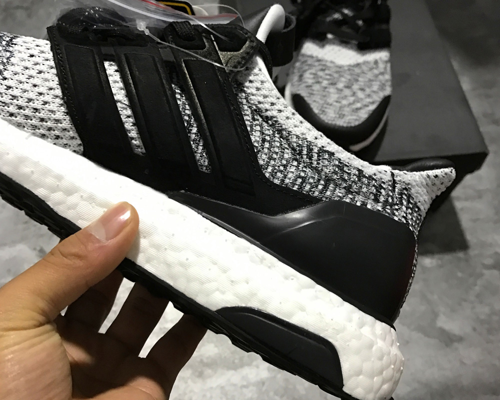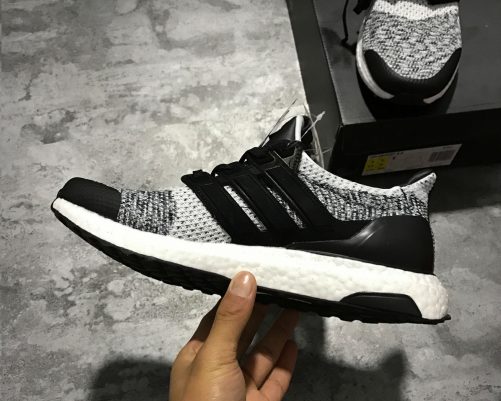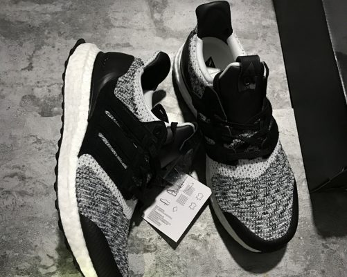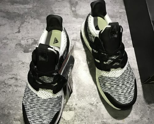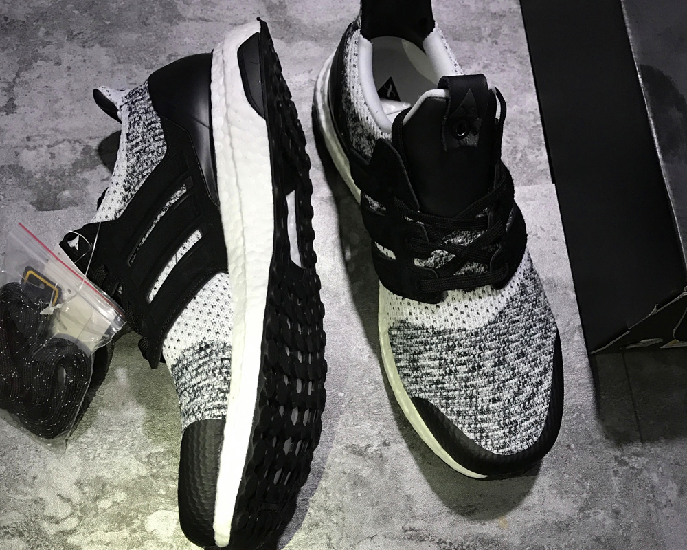 Inspired by “Monochrome Luxury,” the adidas Ultra Boost features a Black, White and Grey Primeknit upper. Completing the luxurious look is a suede cage, taped toe-cap, White Boost and Black outsole.